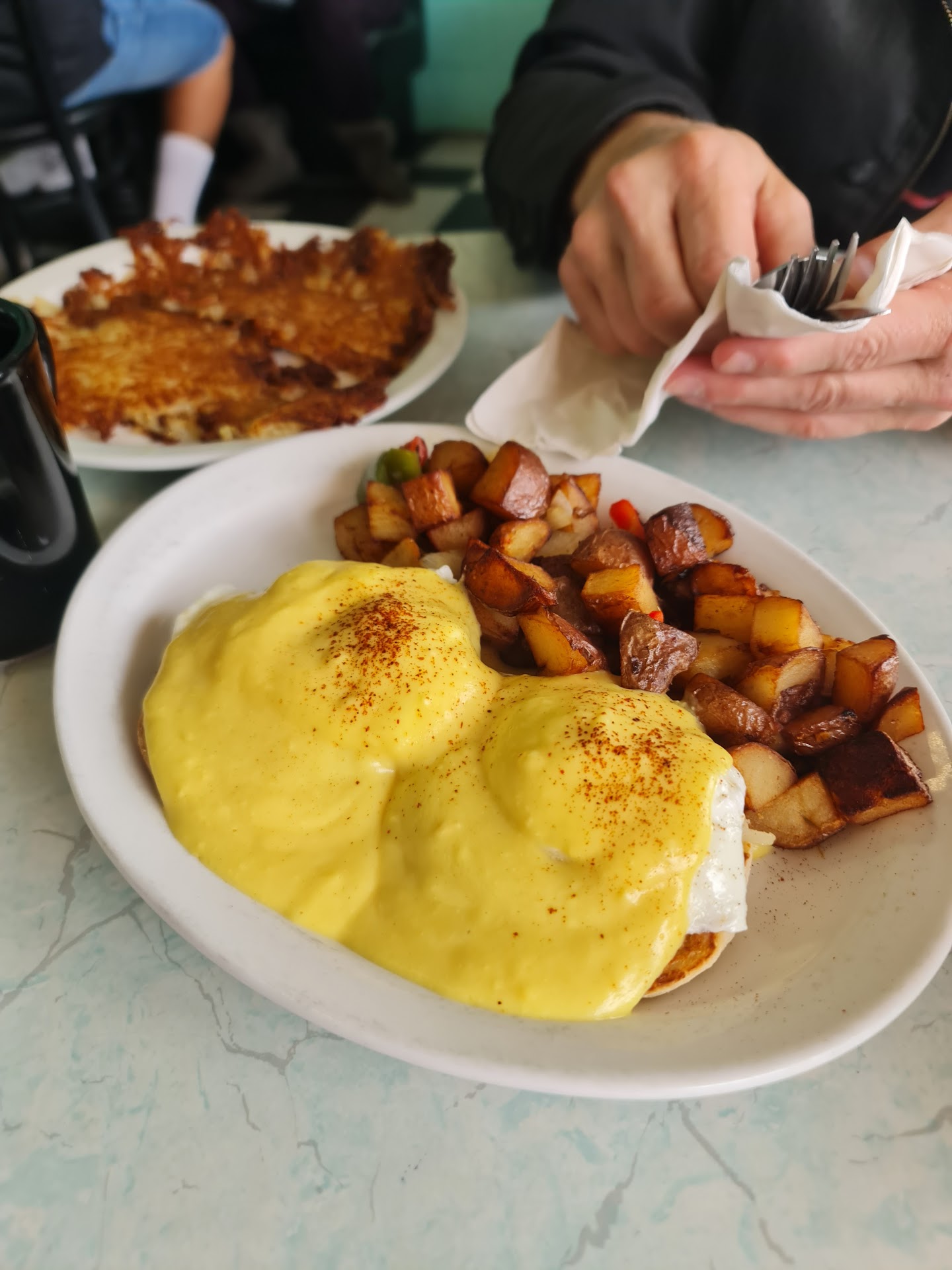 I kid you not my coffee was never half full. I received better service here than some of the finest restaurants in SF. There is no artisanal coffee or avocado toast here and if your looking for vegetarian options your better suited elsewhere. The menu and the the weathered decor is traditional 60's and it's perfect for what this place is. Basic breakfast food, correctly prepared hot and quick to your table. I imagine running an old school diner like this is a challenge in today's business consolidation, fad diet, overpriced, corporate environment but these guys pull it off smartly. Not a single tech bro or tiger mom in sight. You are surrounded by a cross section of California blue collar hold-out's just getting through their morning. No one is overly concerned with you and what your about but it's clear the staff know a number of the regulars here by the personal questions and some even bring their own coffee mugs.The staff are busy but genuinely polite. AMAZINGLY as I type this I am the only one here on there phone! If you want great food served like you're grandfather ate it back in the day for a great price You HAVE to...