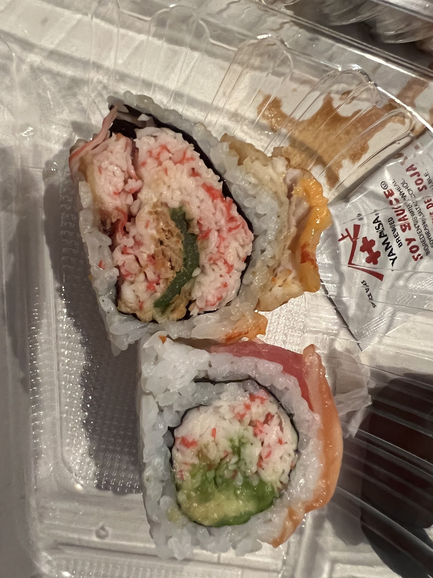 while i was putting in my order the waitress said that should be enough for me... i understand that 3 sushi rolls may be alot but i was considering a 4th roll and this comment was rude and disrespectful, although im unsure if this was intentional or just a cultural thing.