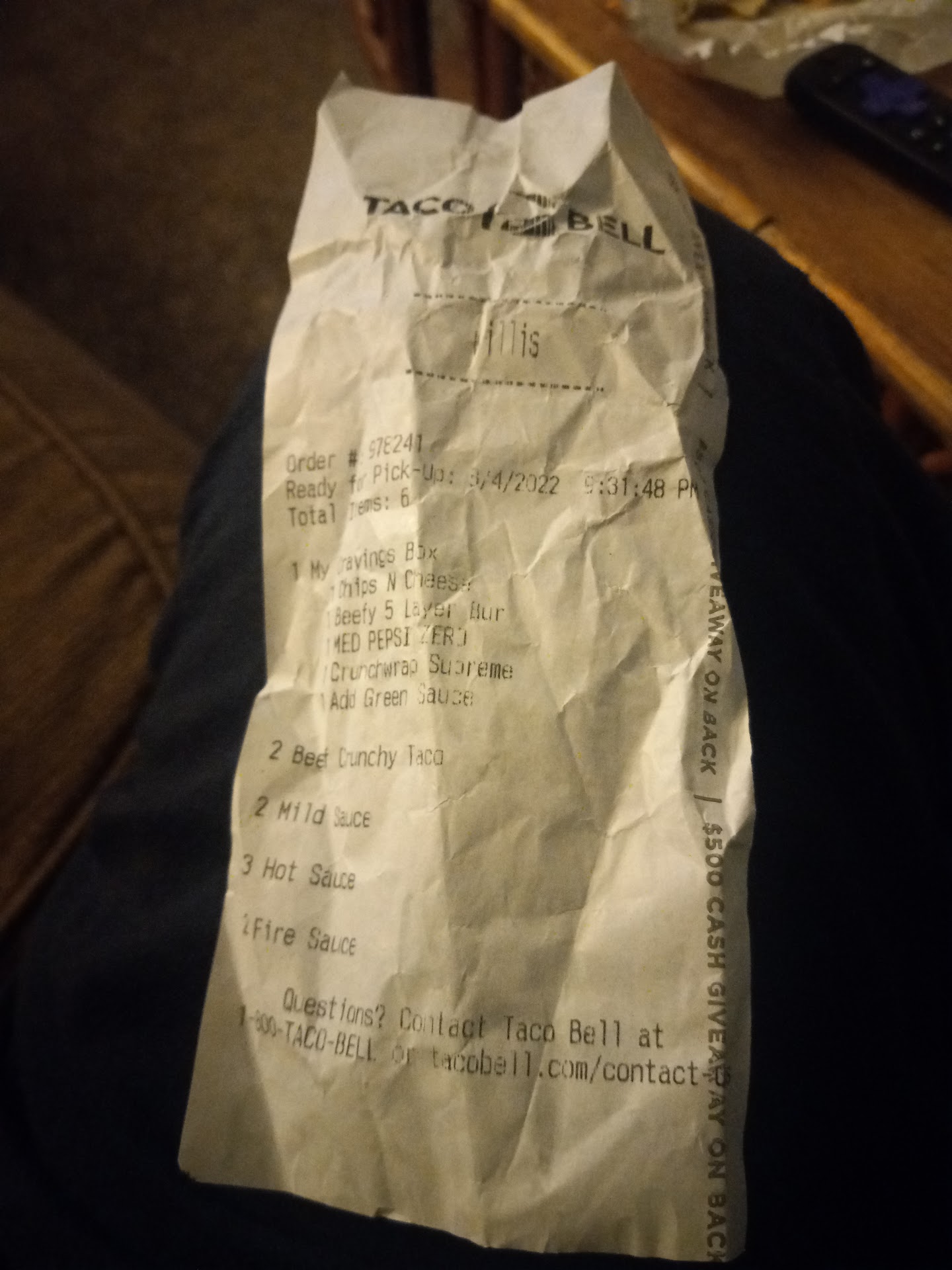 Stop by today to grab a bite eat. The drivethur line was crazy line so i went in side. Well that was proably the worst thing i could have done. After order my i took a seat in thr out dated dining room area there wasn't very many people as it was not crowded at all so I didn't think that I would be waiting very long boy was I fooled. As I'm looking around I'm noticing there are a couple people there that still haven't received their food one of them decides to speak up and states that he has been there for 45 minutes waiting for his food I look to see what time it is and did not realize that I had been sitting inside of the Taco Bell for 25 minutes without food or without anybody mentioning that it would take so long to bring said food if that was the case I would have gotten up and left. At about 2:30 minute Mark I'll finally receive my order I had ordered it for there but all things considering they still packed it in a bag to go so from beginning to end this was the most terrible experience I have ever had at a Taco Bell I will never eat there again and I will tell other people not to eat there especially if I have to wait a half-hour ridiculous. upon opening the bag that I got in the car I come to find out that they had even gotten my order wrong it's completely unacceptable to wait a half-hour for any fast food and get the wrong order thanks Taco Bell for...