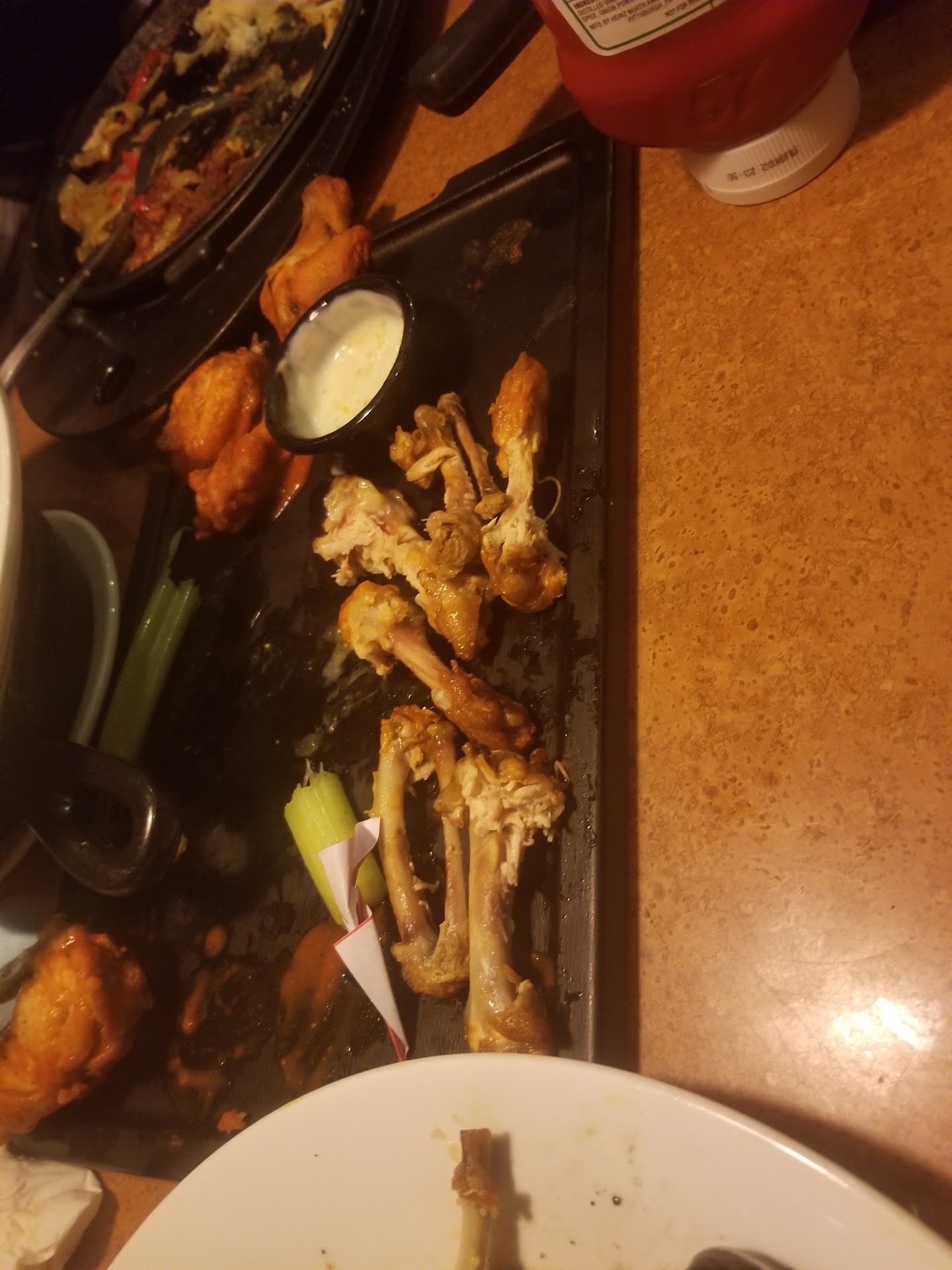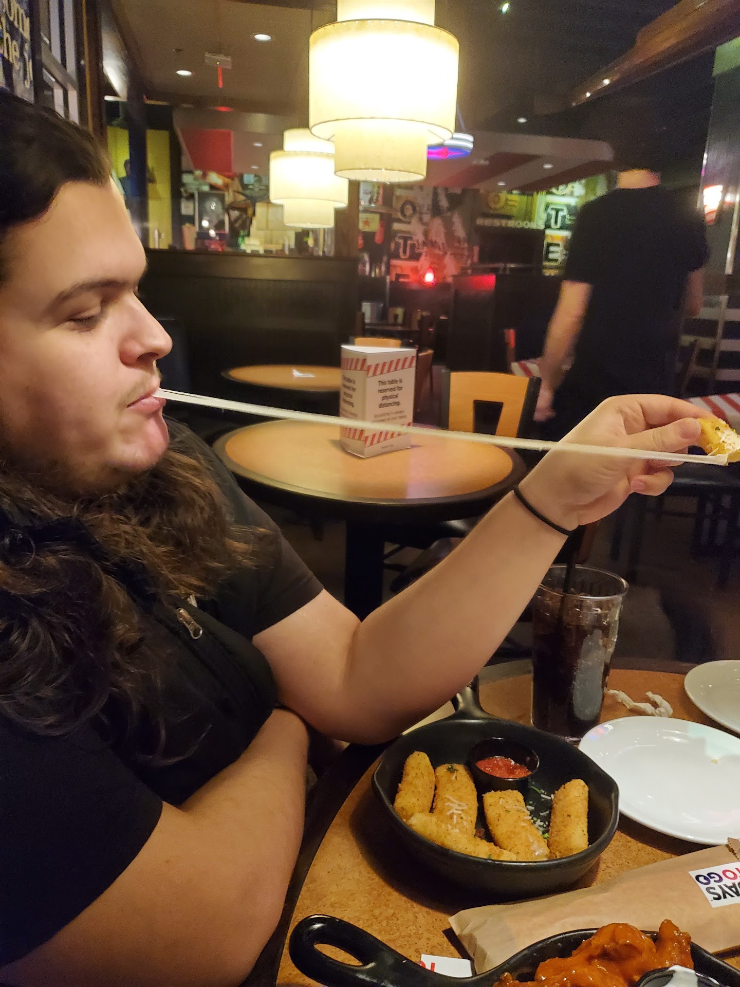 Read moreI've gotta say this was an amazing experience for me, I've eaten the frozen foods from TGI Fridays and always had low expectations. Now when every person that you know is saying how TGI Fridays food is so good, its hard not to think then why isn't the frozen stuff good too? I tell you what, it's way worth getting in person. Don't expect some quick cheap meal but price point is pretty good for the quality of food that you get. Cheese pull, and flavor with a beautiful crunch makes their mozzarella sticks a great choice for the "safe" eaters, if your at the bar I suggest the warm pretzels. They are so soft and buttery and the white poblano queso it comes with makes you want to order more plus it's so tasty with a pint of Angry Orchard. I had to try their garlic parmesan wings and Buffalo and hot dang is it actually a nice flavor combo, the Buffalo even tasted like more than just hot. I didn't explore much on there entrees but the bucket of bones is great, a good plateful of seasoned fries and a half rack of ribs accompanied by even more wings in their whiskey glaze. So delicious and tender, even comes with an actual bucket for your bones. Highly recommend for food and a good experience with staff. The picture isn't even the full length of the cheese pull, and it didn't break. His arms are a good 3ft long or more...