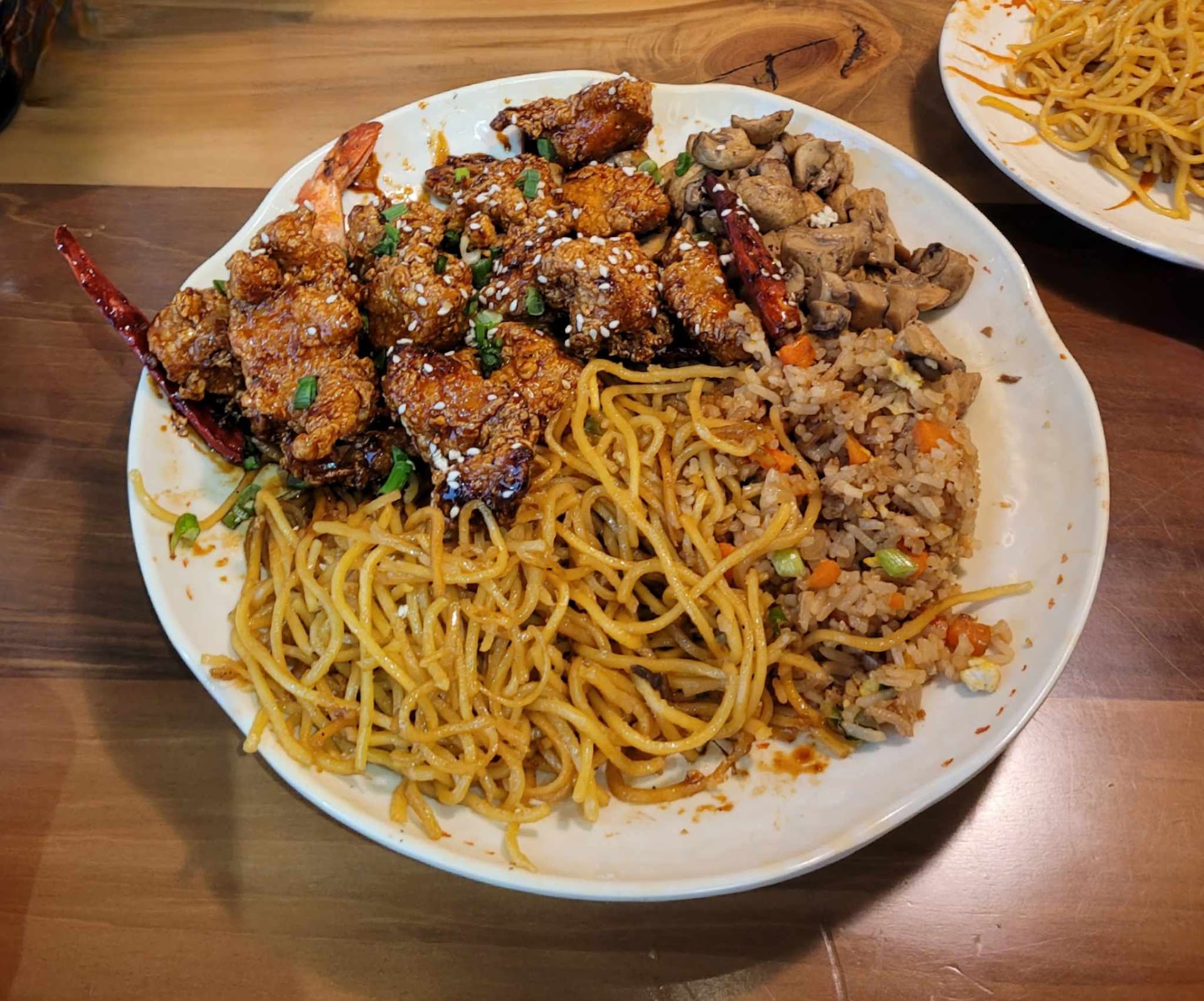 Opting for the Three Headed Dragon, a blend of chicken, steak, and shrimp, I discovered the fried rice differed from the traditional Japanese style, offering a more robust beefy flavor. The shrimp sauce, ketchup-based rather than the usual rice vinegar, added a unique twist. While I enjoyed the meal, it's not one I'd reorder in the future.