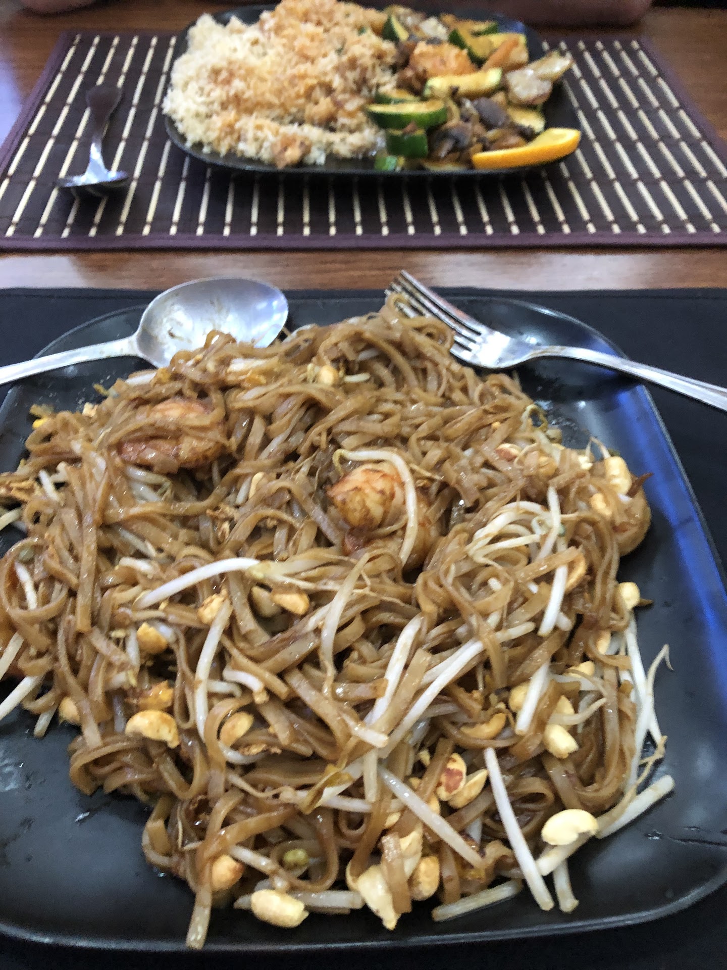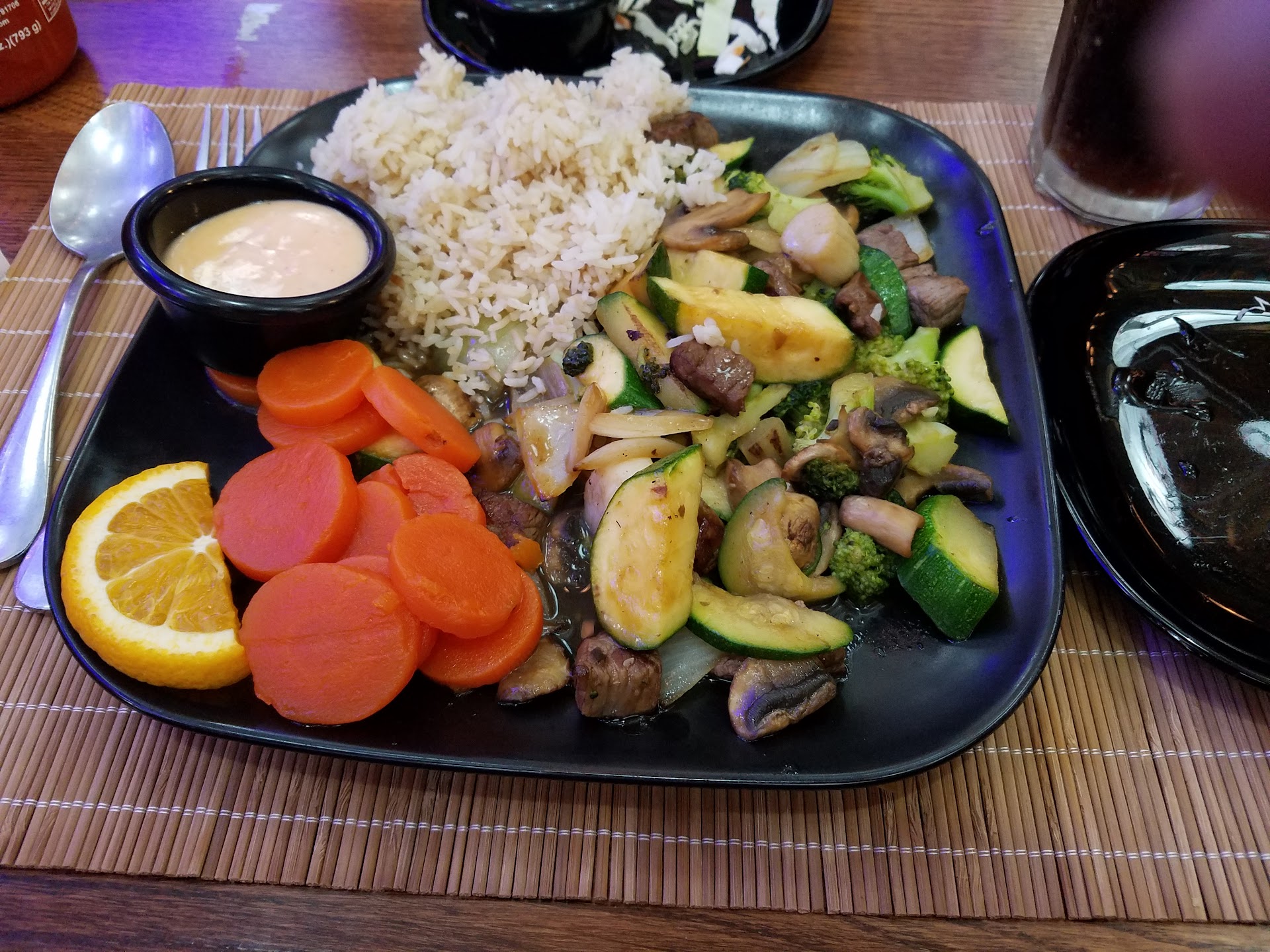 We ordered two house sushi rolls, 1 steak & shrimp hibachi, 1 pad Thai, and two ice waters. Our bill before tax and tip...