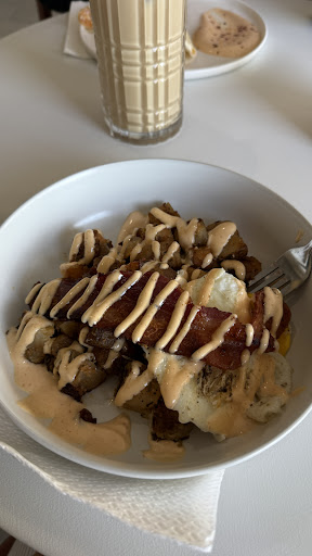 We tried the Vanilla Latte and the Maple Butter Latte — both were smooth, creamy, and delicious, though I will say they tasted quite similar. I was hoping for a bit more of a distinct flavor difference between the two, but they were still really enjoyable. The food, however, completely stole the show. We ordered the breakfast bowl and the breakfast burrito, and wow — both were phenomenal. The chipotle sauce they drizzle on top is absolute perfection — smoky, creamy, and adds just the right amount of kick.
