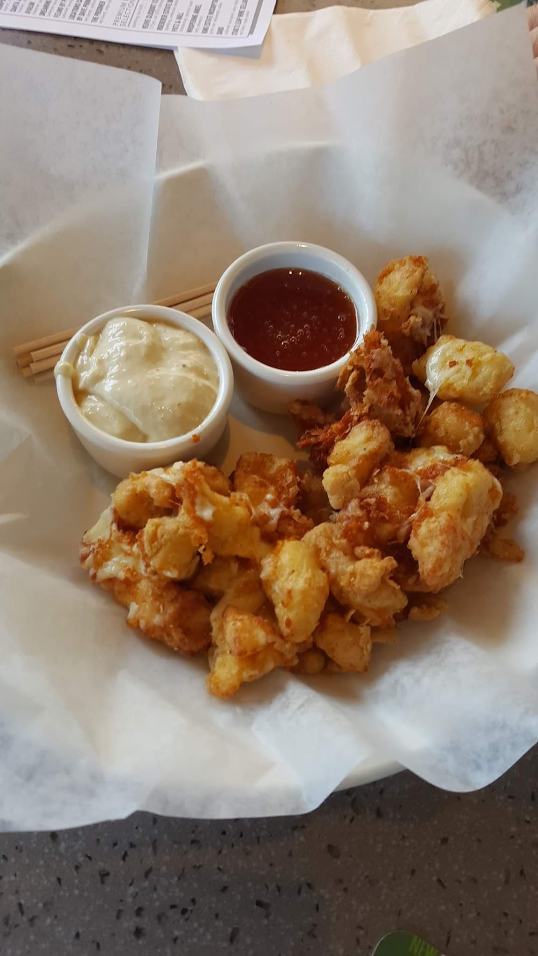 My reason for being there was to try the Wisconsin deep fried cheese curds on the appetizer menu. It's a Wisconsin treat that is rarely duplicated West of the Mississippi. I grew up near La Crosse Wisconsin the first 18 years of my life and the 2 restaurant foods I miss most are the deep fried curds and every Friday Fish Frys. Someone psychic must set us in our server Joey's station. He was wearing a Green Bay Packers mask & was born in Wisconsin. Everything was uphill from there. Joey was very personable and helpful and treated us as very special guests. Overall Joey is an excellent server.