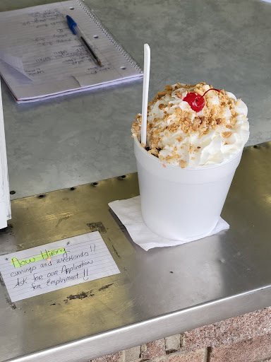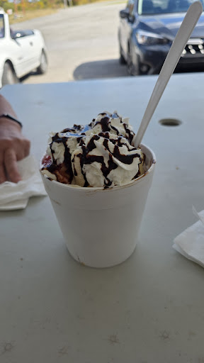 On a gal's road trip and in "need" of a treat. Saw this ice cream venue and we "had" to stop. So glad we did. While we waited for someone to service us at the window, we encountered two women seated at a table and asked what they would recommend. One said they didn't know, they were waiting on their order, but did indicate they ordere the upside down banana split. They also offered up for us to be patient as there was only one person working this Sunday. Well, once their orders arrived, my girlfriend and I definitely opted for the same upside down banana split served up on a cup. It was HUGE, and, seriously, we could have (should have) ordered only one between us and shared. It only cost 5 dollars. With soft vanilla and chocolate ice cream, bananas, strawberries, pineapple, and whipped cream (i had them skip the cherry), it was very yummy. And, no, neither of us were able to finish though we gave our...