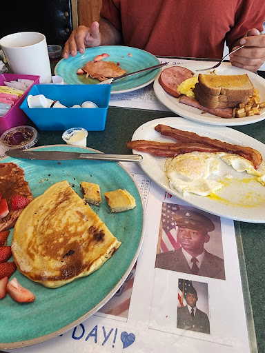 Read moreGreat home town Cafe 🙌 Opens at 6am and the breakfast food looks so good. SOS was good, brown gravy, I prefer white but tasty all the same, hash browns deep fried, toast done perfect 👌 I can't wait to try the crepes!!! I'm so happy to have found a clean, friendly place open early in town other than a big chain restaurant. So tired of assembly line food. 😒 Food made to order is worth the little extra wait. Loads of comfort food, great things kids would like also, breakfast and lunch daily specials. Prices are VERY good!!! The patriotic decor and photos give this place a real homey feel. I felt instantly welcome. Walk in have a seat, they come get your order and when you're done, go to the register to pay. Cash or 30 cent fee for card swipe. Parking lot is small but street parking is available, I did not see a wheelchair accessible door way but maybe the back door is, just a step up in the front. Tables and chairs and floors all clean, no covid style dividers, go elsewhere if you need that, stay home if you are sick or...