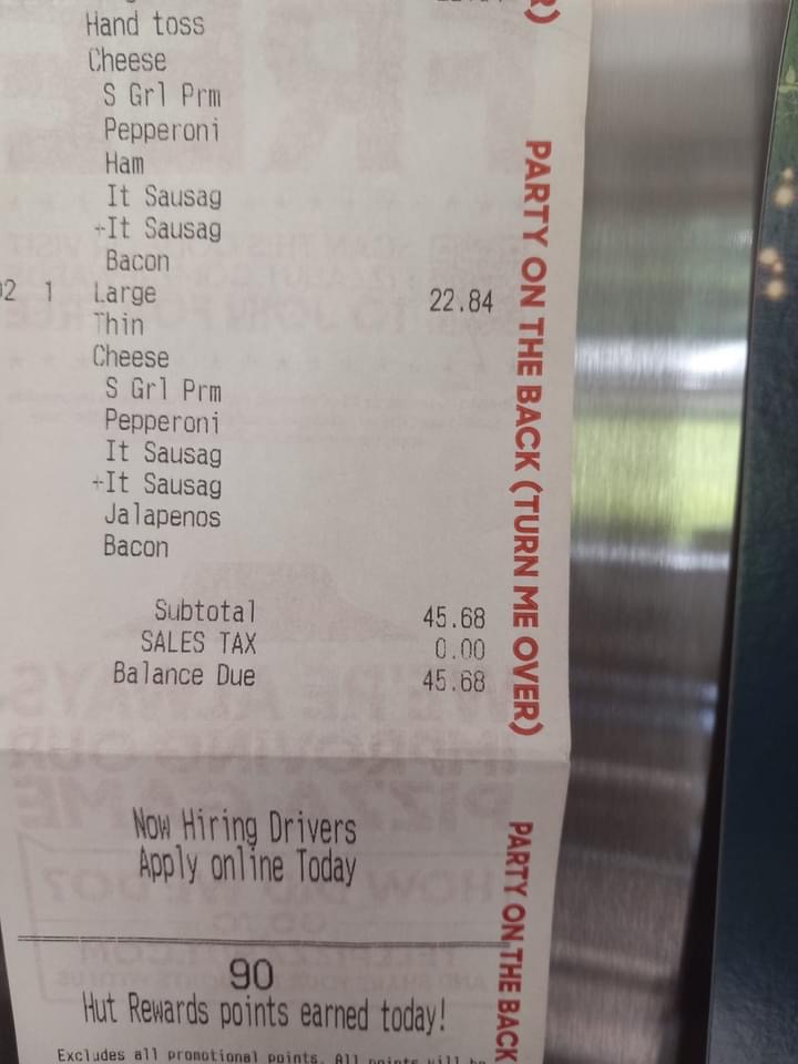 Ā Ā Ā Read moreWaited in the parking lot for over an hour while I watched people who were in line behind me receive their food. I had already paid, and nobody would come to the door or the window so I could see how long it was going to take or to even just get a refund. After FINALLY getting my food, it was burnt and also missing one of the pizzas that I ordered. When told I would have to wait longer for my missing pizza I just left. I'm sure its an under-staffing issue, but at the same time it was quite ridiculous. I won't be going back there. I'll take my money somewhere it...