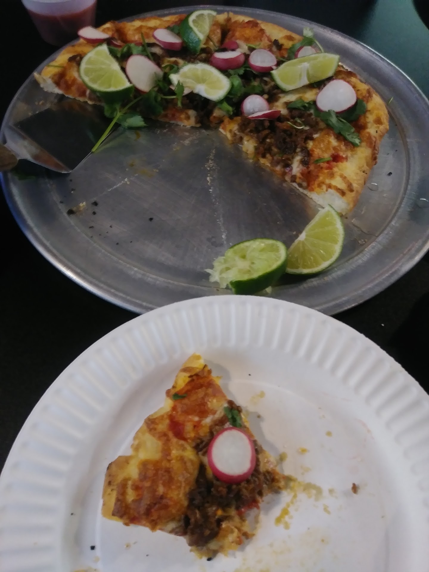 Excellent pizza. Me and my buddy, Enrique were traveling back to Canada from New Mexico and we rolled into Connell and remarked on how eerily empty the middle of town was. We checked the local restaurants and saw that most closed at seven, aiding to our unease. After amount of perusing, we stopped by the Pizza Station and saw that it too exhibited a ghostly disposition. Assuaging our fears, we entered, despite the warning of Google–it says it's closed on Monday. We found the Station to be a quaint, cozy establishment, but not lacking in ghostliness. It displayed an aesthetic of an old train station, hence the name. We saw a singular ghostly young lady who directed our attention to the menu. We were immediately struck at the inclusion of a Cheeseburger Pizza! Rick and I gasped. Our mouths watered ferociously as we ordered, stumbling upon our words from sheer exuberance. The nice ghost informed us it would be a mere fifteen minutes; we could hardly contain ourselves. We waited patiently, and at last the pizza arrived. It was exactly as we had hoped....