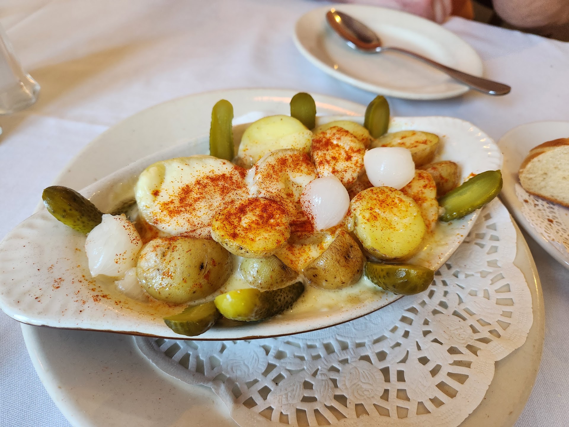 The raclette came out fast but was lacking flavor. I loved the concept - potatoes, cheese, and pickles - but the execution just wasn't there. The French onion soup was full of onion but overall lacked that French onion flavor. The salad was a basic salad but the dressing was good. A tad sweet for my liking but a fun option.