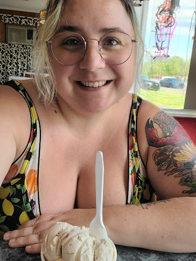 The ice cream selection was fairly decent. The service was decent. It was very obvious these girls know how to serve up some chilly delights in a hurry. They weren't exactly the friendliest group of employees, however when you are pumping out that much ice cream those smiles and super over the top customer care flies right out the window. It's burn and turn bb. The main reason for the low rating was this. The place is a true blue dump. While it was clean and sanitary it was run down and in desperate need of some tlc. On a random week day we stopped in and we weren't the only ones. The line was out the door. Once we got ordered and served I couldn't understand what the draw was. It couldn't have been the ragtag cow paint job on the exterior of the building. It most certainly wasn't the ice cream either. While it was good ish it didn't deserve the price tag it got. Not a chance I will be back for the simple fact the product they served was sub par and in a run down building that probably hasn't seen a paint brush or wallpaper expert since Reagan was in office. Homemade ice cream my tail feathers. Try again. I award you no points and may God have mercy on your soul. Good day Update: Apparently bad mouthing a so so ice cream place that looked like a 12 yr old painted the exterior, is not welcome to givle an honest review. It seriously hurt their feelings so I'll have to take pics the next time I drive by so everyone can see for themselves what a hole...