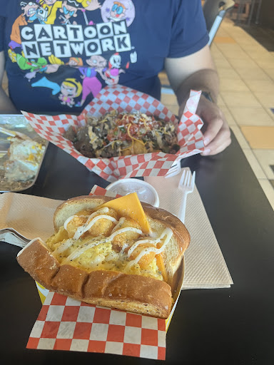 Once we got their food it didn’t disappoint. I got the ETC egg drop which is eggs, tots, and cheese. I got their garlic bread for the bread. My husband got their carne asada tots and added kimchi to it. Both were so damn good! I’m not a local resident and ended up coming back a day later before heading back to Cali. The next day I got their angry dog and my husband got their rice bowl. Another amazing meal. The worse part about going here was knowing that I wouldn’t be able to come here the next day. So sad I can only experience this delicious food in Vegas. Really wish they had a Cali location.
