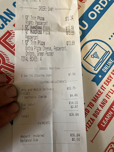 Ā Ā Ā Read moreOrdered 1 large pepperoni pizza at 10:07 pm, to be delivered. According to the tracker the pizza was cooked on its way to be delivered at 10:39.....well we waited and waited and finally at 11:25 the pizza arrived. Almost a whole hour to deliver? Then to top it all off we received someone else's order (looked like hamburger) and it was cold like it had just been thawed out from being frozen. And the name and address of the other person was printed on the side of the box. NOT MY NAME, NOT MY ADDRESS. As a matter of fact this address wasn't even close to my location. After the mixup I called the store for over 10 mins straight all I received was a busy signal. Well finally I reached someone and they admitted the mistake but assured me they would correct the item and have it brought to my door "right away". That dialogue occurred at approximately 11:35. I'm not sure what they meant when they said "right away"... but the pizza (correct this time) finally arrived at 12:58. COLD AS ICE AGAINš” WHY? Almost an hour and a half later? I should be the priority since I placed my order and paid at 10:07 to get food delivered and DIDN'T GET WHAT I ORDERED OR PAID FOR UNTIL ALMOST 1am...and COLD too? Plus this location is maybe 15 minutes away and that is with a lot of traffic. This place is a joke and I strongly advise NOT TO ORDER from...
