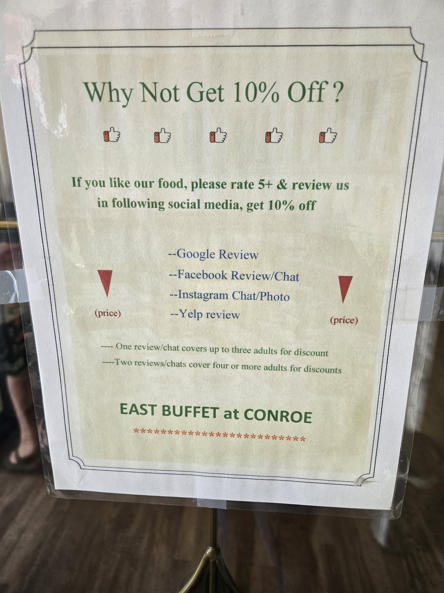 The buffet off I-45 near Hobby Lobby was also a bust.