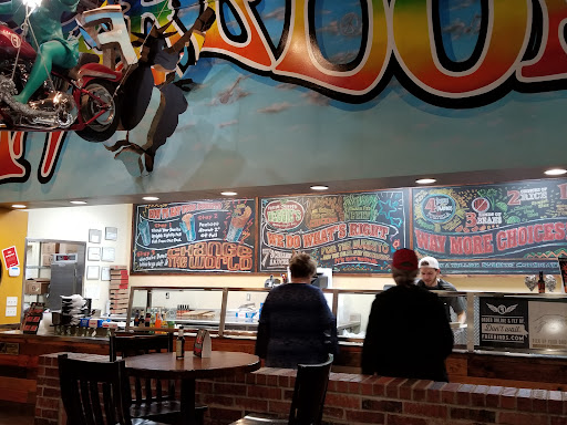 Read moreThis is another Austin-based restaurant that's made it around the state, and it's good. The first thing you'll notice when you walk in is the funky decor, including a motorcycle hanging from the ceiling and a LOT of foil art pieces donning the dining area. If you've never been to Freebirds I'm not sure where you've been, but do yourself a favor and give it a try! It's like a cooler, more rocking Chipotle. I could go there just to sit and listen to the music. You have several choices to choose from. Burritos, salads, tacos, nachos, quesadillas, and burrito bowls. Of course, they are known for their burritos. They come in 3 sizes: hybrid, freebird, and MONSTER (all caps for emphasis). They have different flavors of tortillas for their burritos also: flour, wheat, or cayenne. You have steak/beef, chicken, carnitas, or a veggie burrito with several things to choose to go inside, or on top of, your bowl or burrito. Their salads are a great mixture of greens! You can choose your types of rice (Spanish or cilantro), beans (pinto, retried, or black), and different items like pico de gallo, cilantro, jalapeños, guacamole, etc... You can get a meal with chips and queso and a drink. They also have desserts that are pretty good. The only reason I bump them down a star is their light serving of guacamole. They use a regular-size spoon for a small scoop of guac. For $2 that's a bit chintzy. Also, I must brag on the customer service here. They go out of their way to make sure the customer is taken care of! We have started coming here more often (I'm trying to avoids the carbs and bad fats of Mexican restaurants) and we've been taken care of here each time....