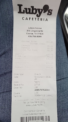 Read moreWelll... so sad to give Conroe Lubys a 3 star. They use to be a 5 star in my mind . The food is quite mediocre in taste now. I have always enjoyed the chicken fried chicken Luan platter but its not on the luan anymore . So you get hugely oversized portion that would take a grown man to finish. The chicken was cooked well and had a good flavor . The white gravy on the other hand was disappointing. It tasted like a cheap white gravy knock off . The mashed potatoes tasted pretty good and is still made from real potatoes . 😁 The dishes are questionable looking. I don't know what method they are using to clean them but they looked dirty. I felt like I needed to bring some plastic utensils. Annnndddd.. for last but not least.... I do want to say that most of the workers there look like they are working reluctantly in a Prison cafeteria, but I want to give a Shout for Johnathan who was very up beat and friendly in the serving line as well as Chris who was working the Cash register. Also our waitress Pam was very pleasent and friendly , got what we needed right away and acknowledged that she heard me when I did call her nicely 😁 Thank you so much Pam for helping me out with the pie when I accidentally got a piece of sugar free pie lol 😱