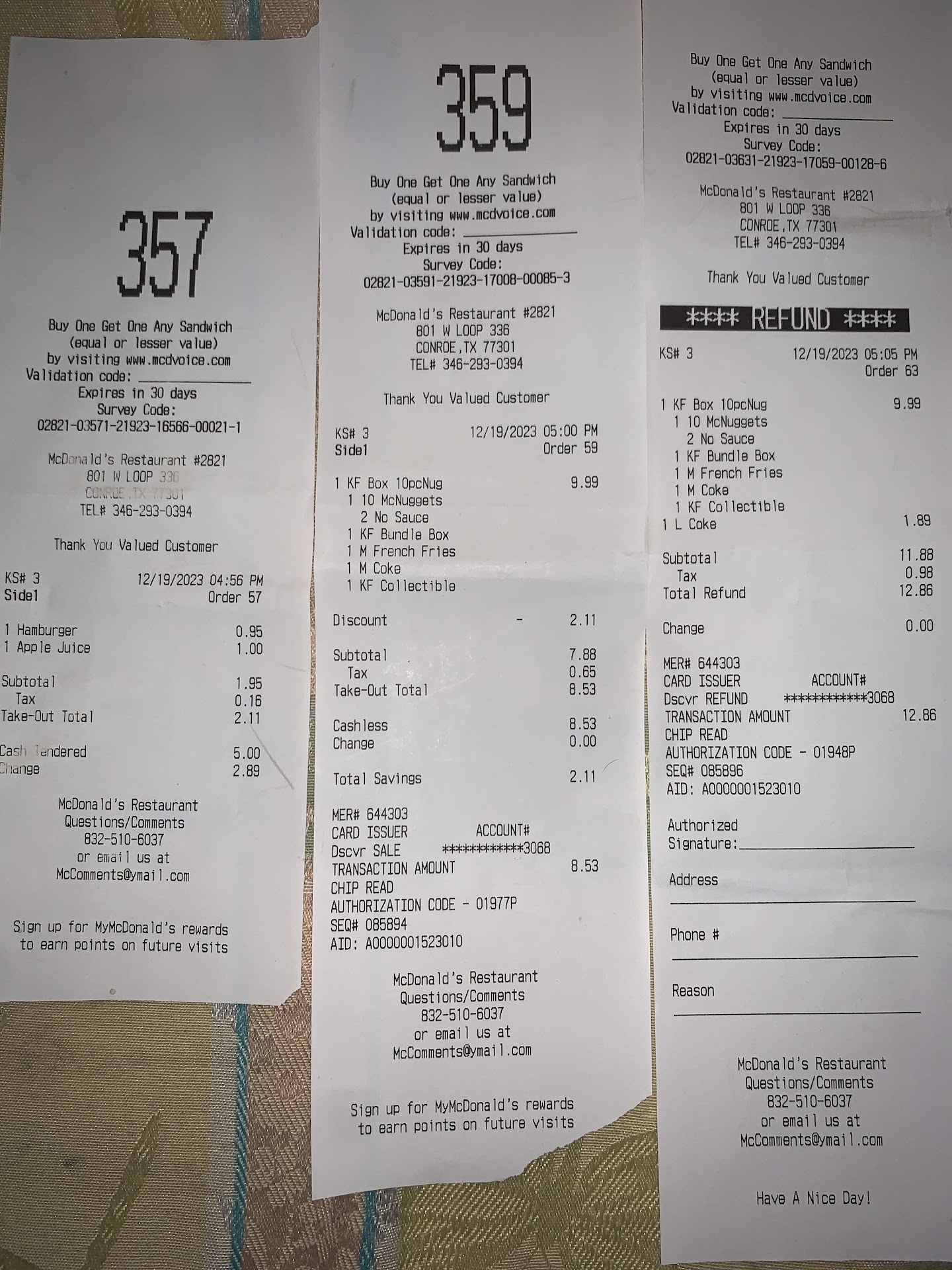 I’ve never been treated as rudely as I was on 12/19/2023 by TESLA. I get it, some people are hardheaded, but when you do things to your detriment just because you don’t want to admit you’re wrong, that’s a problem. I stopped @ the restaurant around 4:45pm. (My daughter is collecting McNugget toys and she asked me to look for the one she was missing.) Employees were standing around, 2 customers sitting at tables. The place was dead. Which is why I stopped, because I didn’t want to ask about a toy during a rush. A very nice young man wearing a headset greeted me (he isn’t part of this 1 star review, he was the only redeeming part of that whole restaurant) while everyone else just stood there doing nothing. I asked him about the toy, he checked and they had it. This is where everything shifts. Apparently that young man was stationed at the drive thru and had an order. A thin young man took over at the counter, drive thru guy sets my toy on the prep counter. I re-explain to ThinKid that I want to buy the toy. He says he needs to ask how to ring it up. He goes to Tesla and quietly asks, she not-quietly answers “She has to buy FOOD.” Google “Lida & Melina, MadTV” if you want to get the full experience of Tesla’s dialect & attitude. Include a swinging ponytail. ThinKid comes back and tells me I have to buy food. I’m not a regular connoisseur of McDonald’s and my kids are grown so I don’t know the rules when it comes to toys anymore. I asked what I had to buy, he said “Whatever you want,” so I ordered a cheeseburger, fries & juice for my husband. My order arrived on the counter, I checked the bag. No fries, no toy. I ask ThinKid “Where’s the fries & toy?” He says “You want a toy?” Seriously? Tesla chimes in and says I have to buy a nugget meal. So I tell ThinKid “OK. I want to exchange that cheeseburger for a NUGGET meal and the TOY that drive thru guy showed me.” ThinKid calls Tesla over because he doesn’t know how to refund the cheeseburger. She rings up the nuggets & toy and gives me a $2.11 credit for my initial purchase. Apparently no one here knows how to do a refund. Order up, I check and there’s a different toy in the bag. I’ve been in the store for 20 minutes now. This is when Tesla decides to cop an even bigger attitude. She says “We don’t have time to dig through the toys to find the one YOU want.” I remind her that the one I wanted was already on the counter, all they had to do was put it in with my food. She says “THAT toy got tossed back in the box,” and she wasn’t going to look for it. I tell her I’m done, I want my money back. I’m not buying food that I don’t want to get a toy that I don’t want. She tries to refund me $8.53, I remind her there’s also $2.11 due from the initial purchase. She scolds me! She wags her ponytail and says, “I already GAVE you $2.11 toward your meal. You GOT your $2.11 already!” I pointed at the meal on the counter and say “My $2.11 is IN THERE. Tell me what, exactly, I should take out of that box to recoup my $2.11.” She huffs and puffs. I tell her “All you have to do is let drive thru guy retrieve my toy, and I will leave with the toy AND the food! No refund necessary.” She completely ignores me and says “…insert your credit card.” She refunds me $12.86. I tell her “I only spent $10.64. Your drawer is going to be short at the end of the night.” She said “I don’t know how to do a refund any other way and I don’t care.” I told Tesla she was very unprofessional and rude, she retorted she WAS professional. I left with my $2.22 gain. I drove maybe 5 minutes and saw another McDonald’s on League Line Road, so I stopped. Guess what? They were HAPPY to check for the toy, which they had, and I was out with food & toy, stress free, in under 5 minutes. Tesla is a beautiful young woman, but the minute she opened her mouth she was nothing but a hostile, trashy punk. I feel sorry for her customers & coworkers because she is just not a nice person. Hey Tesla! It’s OK to admit when you’re wrong, it’s OK to admit when you don’t know how to do something. That’s how people...