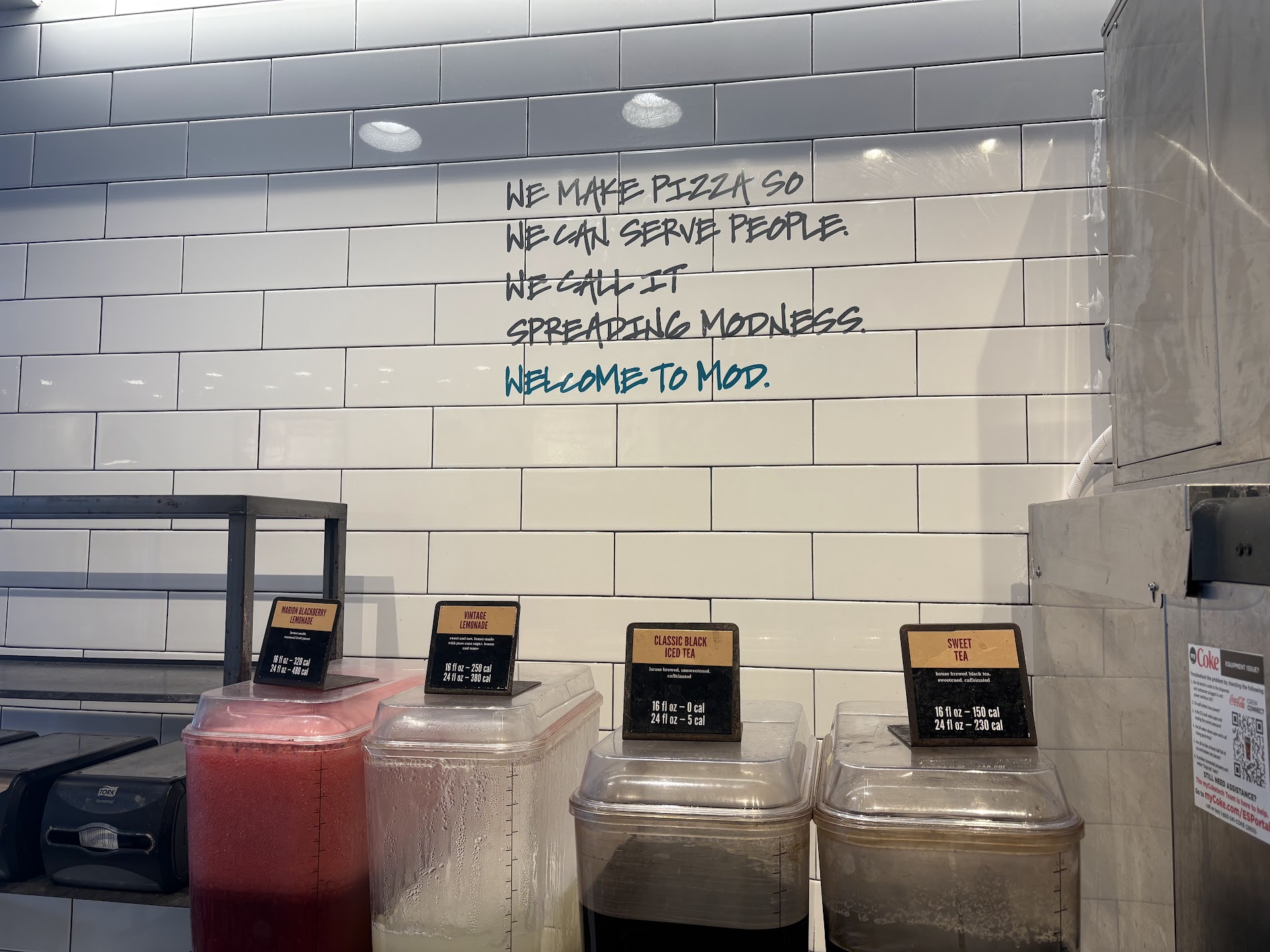 Ā Ā Ā Read moreWhen I went to MOD Pizza, I thought it was just like a regular pizza place, similar to Pizza Hut, except they had more room to sit down and we're trying to promote it as more of a hangout type of restaurant. Then my girlfriend explained to me that it was similar to Subway in that you could get whatever you want put on your pizza, except they don't charge you for each additional thing the way that Subway does, or other pizza places for that matter. If anybody doesn't know, you pay for your crust, with several different options, including cauliflower, and then you just build your own pizza however you would want to build it with no charge for as many different things as you would like on there. I thought that was pretty cool, and I ended up making a pizza that was amazing. The servers that worked there were really friendly, and very helpful, which made the experience even better. I would highly recommend MOD Pizza for anybody that is looking to experiment with different pizza toppings, or anybody that is looking to be able to sit down and enjoy a good atmosphere with some friends or family. Food is wonderful, service is great, atmosphere...