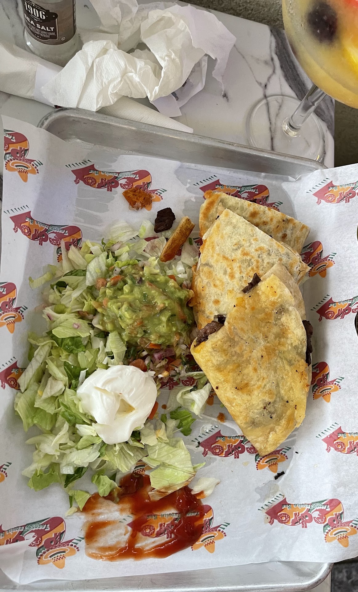 my grandma decided to complain about to-go beef quesadillas she had 2 days prior during check in, which the host/manager didn't care. He only said "sorry." She ordered them because dine in, she thought they were great. But I am not my grandma, I am not rating on this. But maybe some bias?