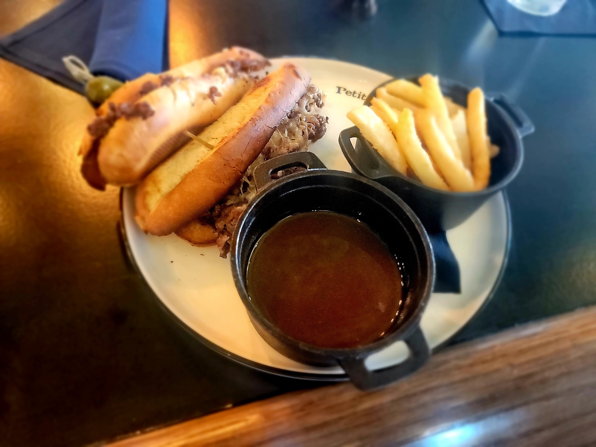Finished up splitting a Créme Brûlée. You have to, it's perfectly French, it was a little too yummy and I could get the picture taken before the spoons had half devoured it. Now for the Piéce de Résistance...Toillettes... Clean, modern-enough, bright, small (fitting for the size of the dining room) with some trendy bits, the Oceanic blue stone pattern tiles on the walls, the copper sink (cool), gold mirrored napkin holder (not one of those tacky chrome wall-mount dispensers), oil-rubbed brass fixtures. Just enough to stay on par with the dining experience as a whole, but, nothing in and of itself to write home about. Certainly, didn't carry a French influence into the restroom, at least the men's. I can't wait to go back to this place! Why didn't I get truffle mac n cheese? Why didn't I try Ratatouille?!? ALL LOVE for this place and Nothing but Good Food in a romantic setting. Followed up with a walk along the waterfront docks, with sailboats slipped and a Catfish feeding well in the center of the docks. Lights from the adjacent waterfront restaurants over the night time boats...great date night destination. Highly Recommend. But, only if you like...