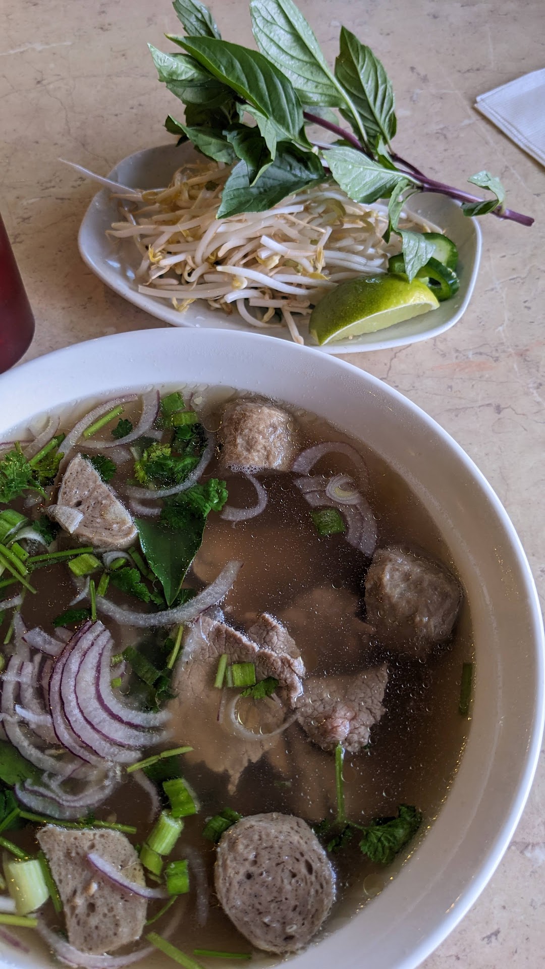 This is an excellent Vietnamese restaurant with great food and service! This is one of my top favorite restaurants in the area! I had a really great dining experience here, even though they were busy! This restaurant really exceeded my expectations, and I would give them 10 stars out of 5 if I could! Walking in, we were greeted and available to choose our own table to sit at. Staff quickly arrived at our table and took our orders and returned with our drinks quickly. With no exaggeration, they returned with our meals within 5 minutes!?! I think they serve food faster than most fast-food restaurants! That is not an exaggeration. We ordered the P2 everything flow, a order of Curry Beef with fried rice and a California Sushi roll. Wanted to kind of get a good spread on their food for sampling: *The P2 was a nice amount of food to satisfy a very hungry person. It came with a delicious broth, plenty of noodles and plenty of meats! It was served with a side of fresh and crisp sprouts, basil, peppers and lime wedges. The broth was fantastic and not salty (about $13). *The Curry Beef was delicious (not too spicy) and came in a thick curry sauce that also had whole snow peas and sliced carrots. The fried rice was also very delicious (about $12). *The California roll was fresh and a generous portion of eight pieces (about $7). Not only was the food great, but the staff and management here is perfect! The staff was attentive and really put effort into making sure that guests have a great dining experience! I think all restaurants should operate their staff as well as Pho An. The dining area was clean, and each table was well stocked with utensils and condiments. Another plus of this restaurant is that normally at Vietnamese restaurants you are served a can of drink but here they have fountain drink and continue to refill your drinks. I HIGHLY recommend Pho An in Conroe and give them two BIG deserved thumbs up for setting a gold standard for restaurants! Everything from the food, the staff and the dining experience was spectacular! I will definitely be coming back here again and suggest that you try them as well! Thank you, Pho An for a great dining...