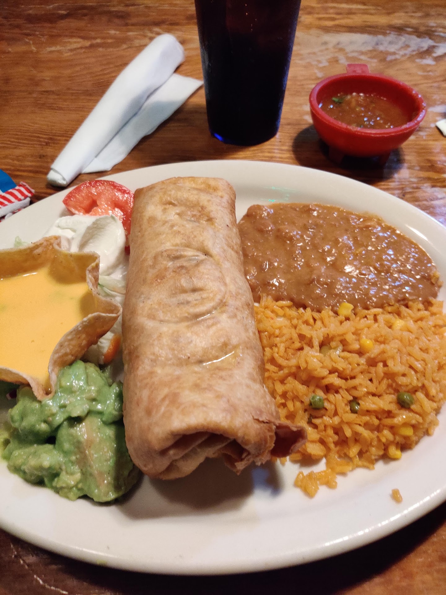I ordered delivery through Door Dash and recieved my order in about 30 minutes so i am not rating the service or atmosphere here. The food. The food was just so awful. We had never tried this place before and there were so many stellar reviews that I thought we were safe. However, all I have now is regret and a lighter wallet. I ordered the enchiladas plate & a guacamole scoop for myself. My husband and father in law got the chimichanga plate and my kids got the chicken nuggets and chicken quesadillas and the churros to split for dessert. I'm not sure if their food holds up better at the restaurant on a hot plate as opposed to a styrofoam container but when I tell you everything was watery, EVERYTHING in my container was watery and that made it really weird and not enjoyable and it all just tasted off. Apart from the moisture I did not request, my rice had no flavor at all it was tragically bland I kept eating it hoping for some sort of something but no, just more watery rice. I found it odd that the guacamole scoop tasted like just straight up avocado, as if they had just scooped it out and mashed it up a little and called it guacamole it did have a tiny amount of salad that came from a bag to go with it which also seemed odd because I don't usually have red cabbage with guacamole and I don't think I will ever again. As for the unfortunate enchiladas themselves the chicken was very dry and quite chewy and completely unseasoned and there was barely any cheese inside to help the poor chicken out. The sauce was incredible in the sense that it's incredible that they call it enchilada sauce, I kept looking for any whisper of Chile powder, garlic, salt ANY tiny little hint of flavor but there was nothing but more watery flavorless disappointment. I was also not a fan of the queso or the stale chips they sent, the queso just like everything else tasted bland...how do you serve bland queso and feel good about it? My husband and father in law said their food was bland and watery as well. The kids seemed to like their food so at least I didn't have to fix them dinner still. The saddest thing by far though was that they didn't send the syrups for the churros but honestly I'm not even sure it would've saved them. They were so hard they were almost inedible I feel like I could've made better ones myself at home and I think they came from a frozen bag which I would expect from Taco Bell but not for the price I paid. Extremely unsatisfied with the quality of this establishment and will never be ordering...
