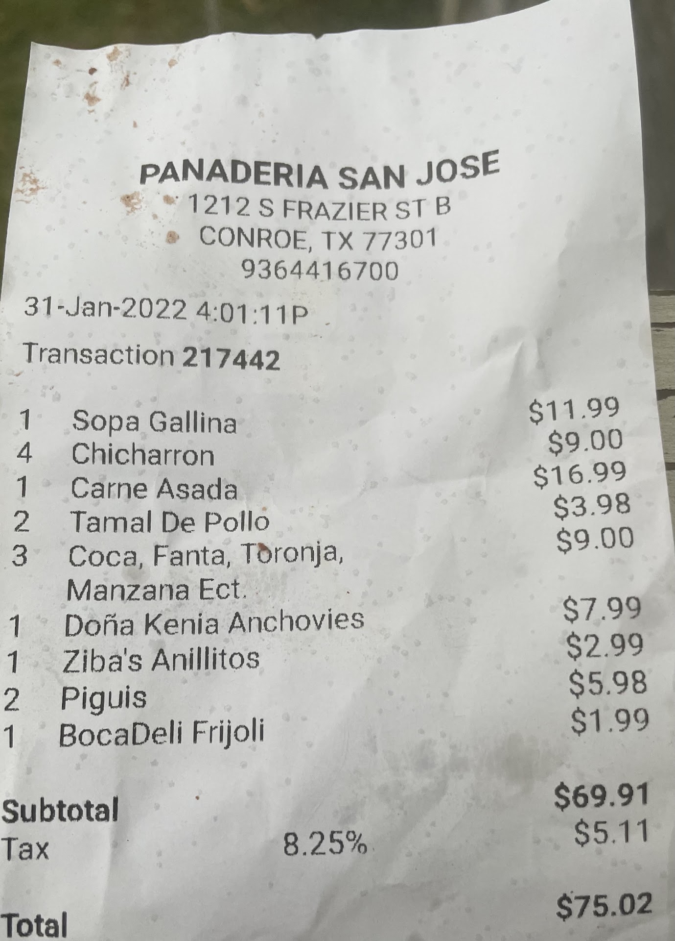 I don’t usually post bad reviews but this one deserves to be written. We have been ordering from this place for a while and we didn’t mind the terrible service from the guy who is at the register because the food is as Salvadoran as it will get in Conroe. However today I ordered what’s below and the tamales were not in our bags and there was an additional charge for the churros my husband bought. The soup was unpleasantly spicy which made me uneasy as it easy as it was supposed to be for my toddler. When I called to get a refund for what we did not get and the over charge they made me repeat the same thing about 3 times and put me in hold while they were looking for the receipt. They also told me hay the soup was always like that, which is a lie as I have ordered from this place before and it’s not like that. Nevertheless, I told them to keep the money as my hungry toddler was extremely inpatient but I will NEVER order from this place again! the owner is so sweet and takes care of her customers which is a shame as the people she has running the place don’t...