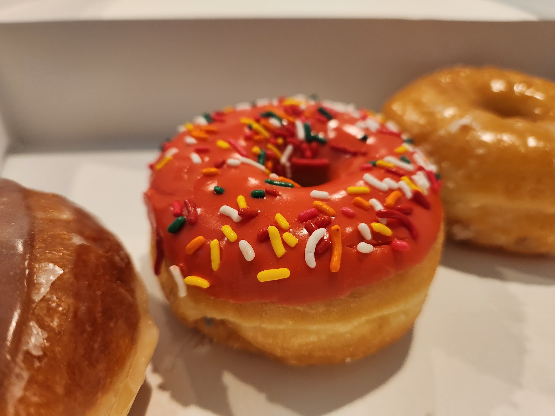 First time here this morning. Waiting in line behind 5 cars and man can they move. MayBe waited 5 minutes. I ordered a dozen glazed, a dozen chocolate, and a dozen of large piggies. I did not wait long at all. They were on top of everything and I waited maybe 3 minutes or so for my entire order. I have obviously a large family and their donuts are so good. Love it! You ha e forever customers. Btw thank you for the extra surprise in our boxes of donuts. The free donut holes and rectangle doughnuts were a wonderful touch. The kids loved them. It was a nice...
