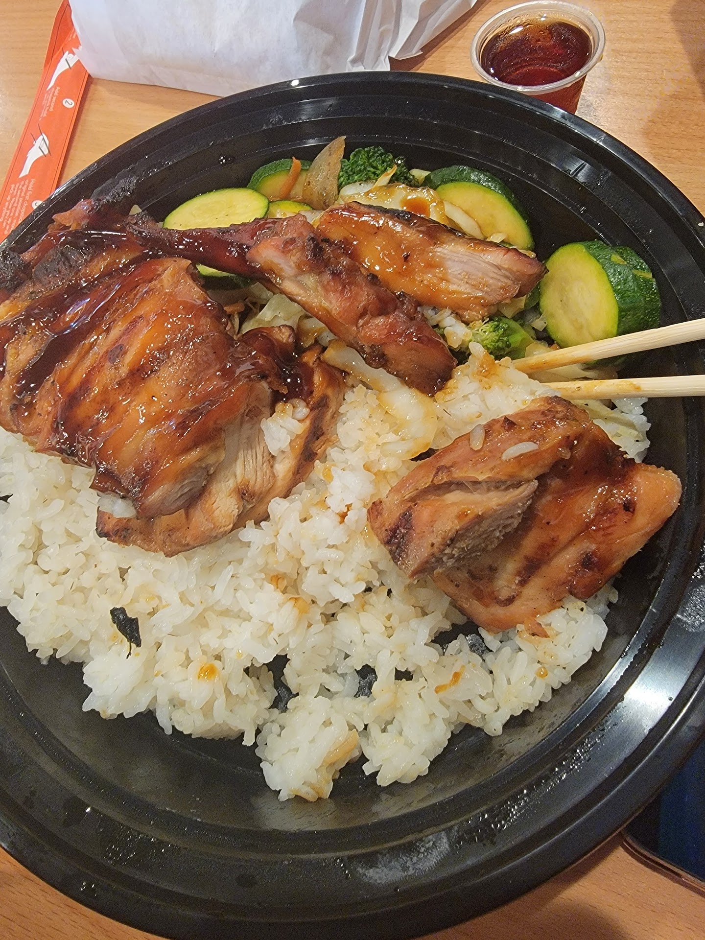 I ordered a large teriyaki beef dish for over $15, which sets a certain expectation for quality. At the very least, I expected the dish to be properly cooked and served at an appropriate temperature. However, the beef was barely above room temperature, and the brown rice was stone cold.