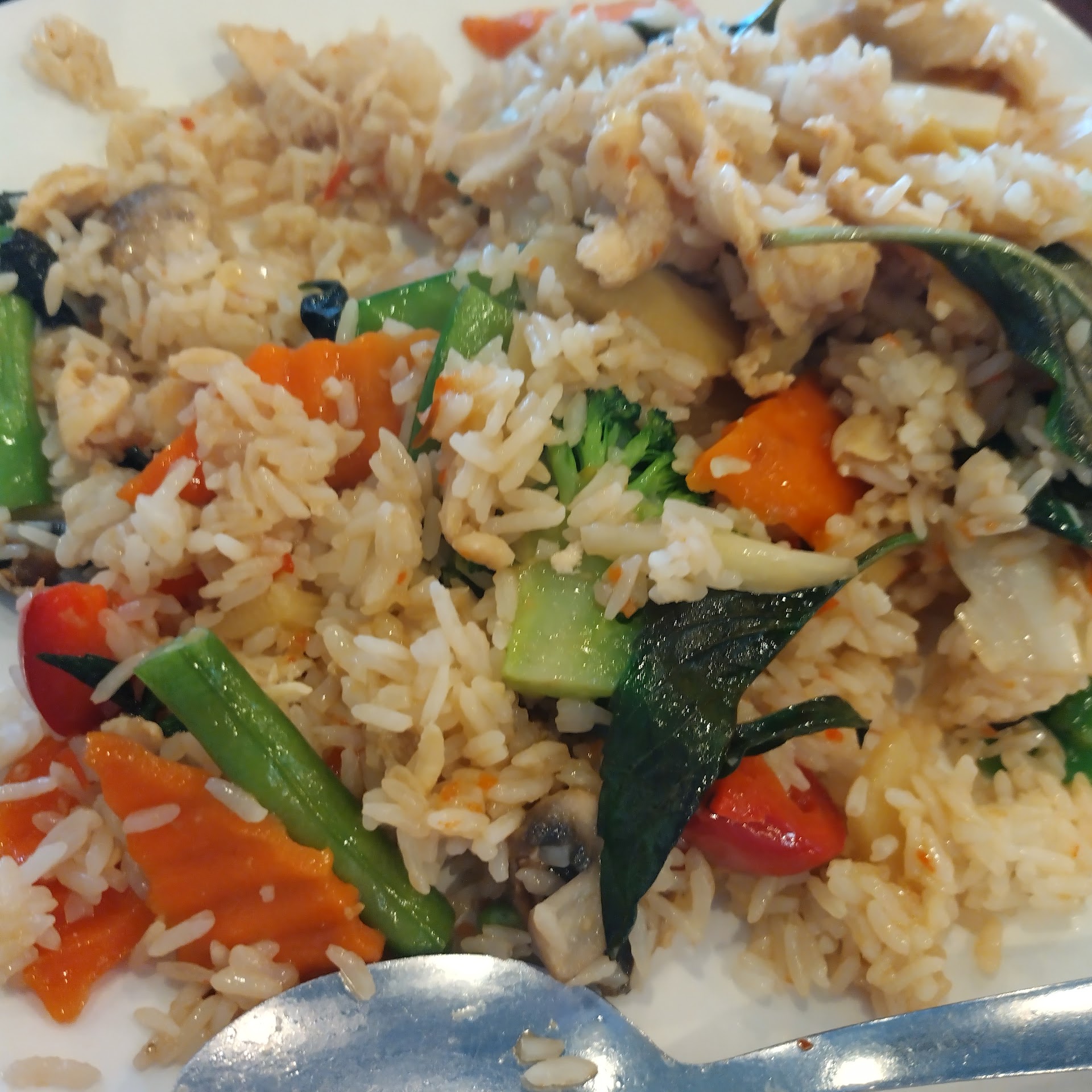 Spicy chicken basil, Thai spicy fried rice ! So much food! I had two full meals after this . The chicken satay was delicious ,we ate it all , peanut sauce was okay really thick , I didn't like the sampler combination with mini rolls super small yet great pork flavor , the flavor of the spring roll was off had this sour bitter after taste, the cheese rolls where great and the sweet sauce was amazing. The Thai tea was amazing and a great price under $3.00, next time I wouldn't order the Thai basil rice because the Thai basil chicken come with a huge portion of plain rice and both dish's tasted the same flavor wise which I loved this is the best tasting I've had ever! .this is the best place to eat and made it Thai spicy ! I have to come back and try othere flavors I loved it all be back again! If you're wanting a wonderful place to eat Thai food in Conroe this is the only spoti would go too great price lots of food wonderful flavor fresh ingredients large oortions. I moved her from Northern California and was craving Thai food this is a absolute gem I'm so happy to found this place!I looked for hours online to find a place and so happy I found this place must try you won't regret it💯🥰