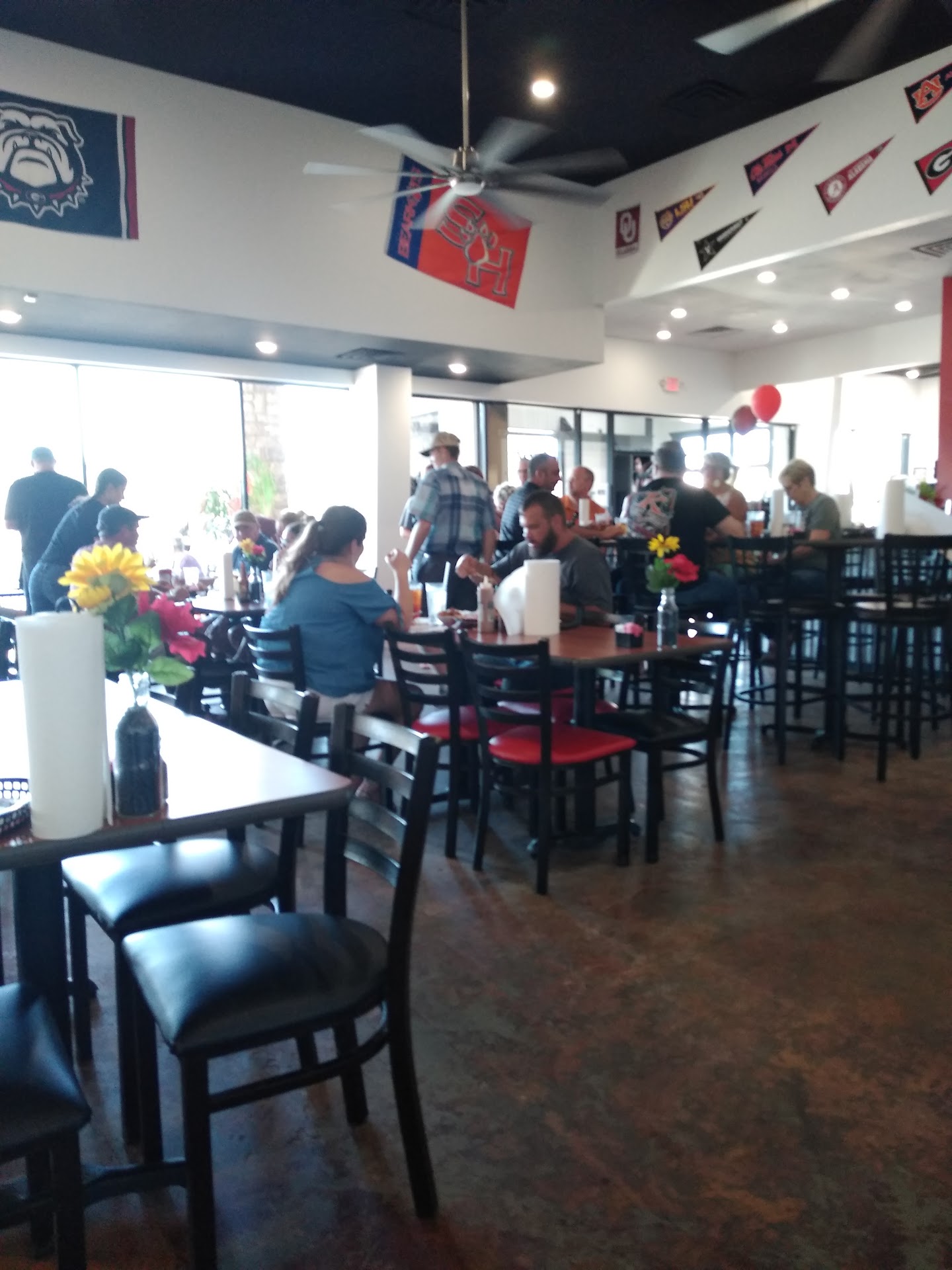 What a great place! Onion rings were to die for. The owner was so nice and I enjoyed our conversation about his success with his BBQ sauces. Great to have Georgia folks here! Loved that they asked Kenny Cooper to play for the One Year Anniversary Celebration. The place was amazingly clean and pleasing to the eye. Great food ! Great Service and I put it on my list of must of places you must try . PS the Bob's Party Punch was spiked and right!