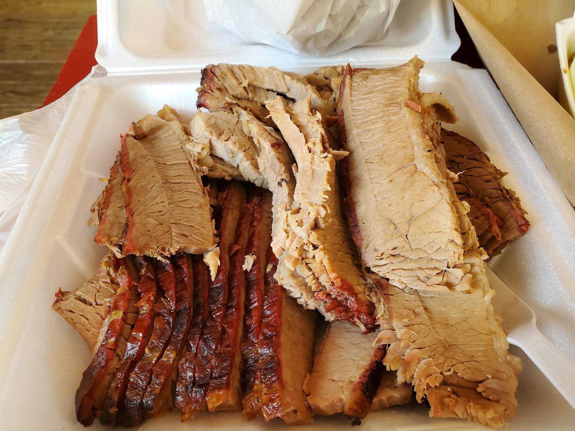Read moreWe arrived 15 minutes before it closed on a Saturday night. We ordered 4 sandwiches to go, especially since we're still in the Covid Quarantine. Yes, we were wearing masks to order and while we waited for our order. The place is obviusly a longtime local's joint, judging from the memorabilia on the walls, especially the photos of the 1940 High School Graduating Class. It didn't say which High School, but it must be Conroe. In fact, one of the listed graduates is named Conroe which would make her around 98-years today. She must be related to the town's family. Anyway, sandwiches ready to go, each packed in a styrofoam container and placed inside brown paper bags for easy handling. The sandwiches hit the spot as a late night meal. Only wish they had included a side of barbque sauce for each sandwich. Most of the sauce in the sandwiches had been absorbed by the bread by the time we got home, so some of the sandwiches were eaten with the bread as a side with the potato salad. The sliced brisket was delicious as well as the chopped brisket and chopped chicken. The chopped sandwiches held the bbq sauce better. The potato salad was almost like mashed potatos. The bits of bell pepper in the salad were a nice compliment, but it was missing diced potatos and egg. Overall, worth the stop at this traditional...