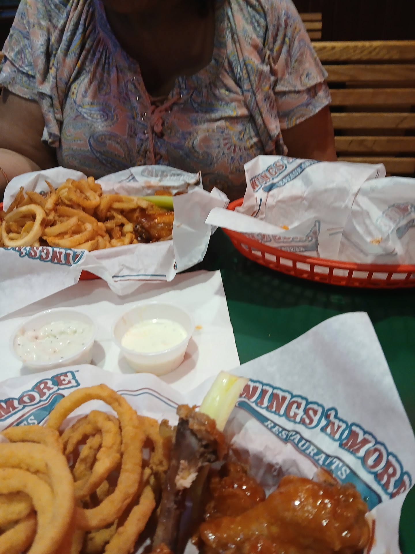 ย ย ย Read more08/23/2024 which was a Friday at 7:30 pm. my boss and I had went to this establishment and Eli was our cashier it was a very busy day chaos was everywhere and as I was telling him my order I guess lack of communication was in mine and his part and I was wondering why I only got one order instead of both of my orders so they ended up fixing the problem and I got a free entree for all the confusion but other than that this was the most excellent restaurant that I've ever been to for wings the restaurant was very clean and nice and ran efficiently for the amount of employees that they had I will recommend this place to my friends and family because it is a wonderful place to have wings and if you're a game person to watch the game on the big screens but Eli was a very nice gentleman and he needs to be recognized for his efficiency and his quickness to fix the problem and I will be coming to this place again. And the rest of the cashiers that were up front three of the young ladies that was there were very pleasant and there is another gentleman that was very helpful I didn't catch his name but he was very sufficient and prompt with also the correction cuz he was the one that brought us our food prompt with everything cuz he was the one that brought...