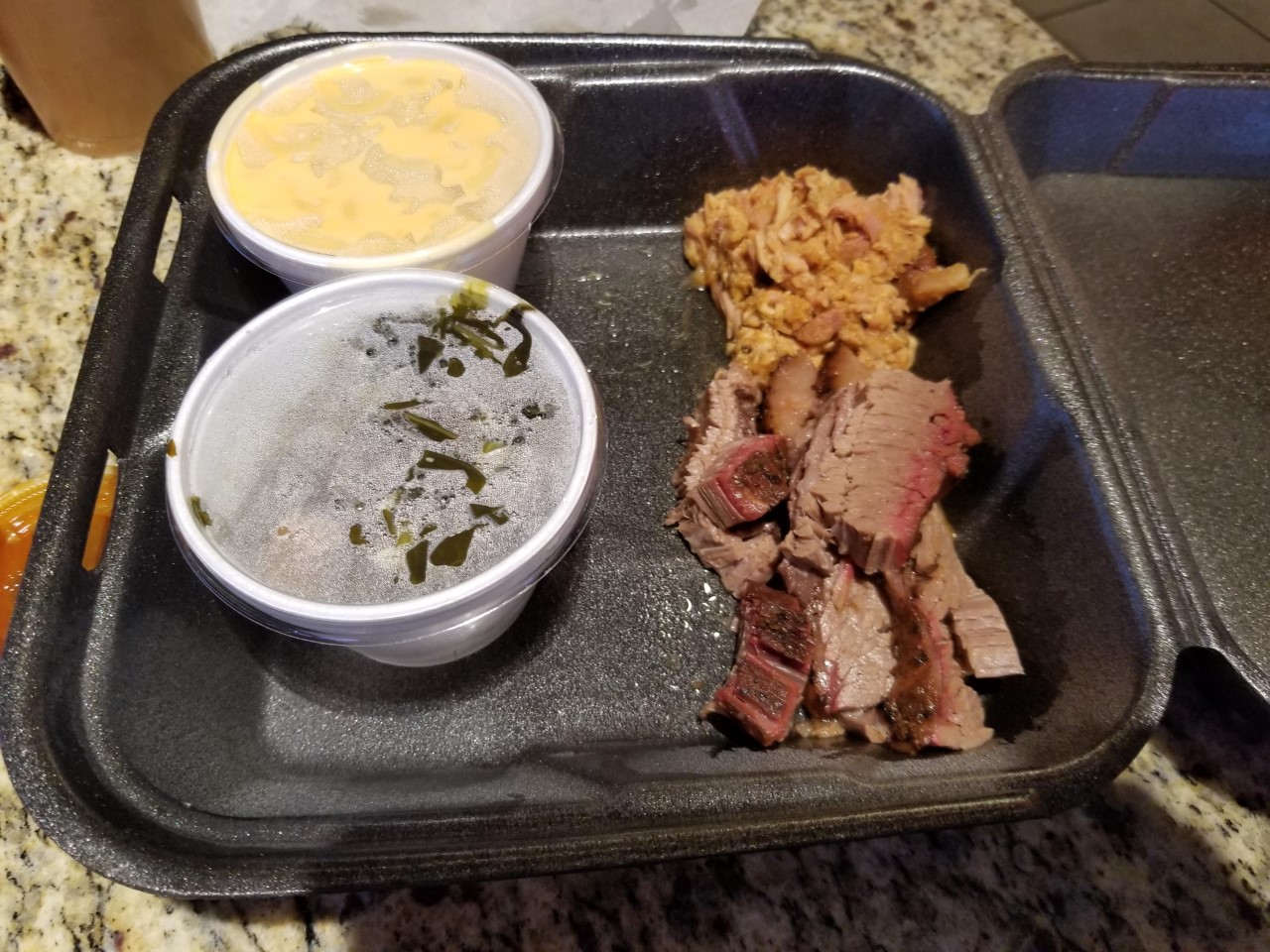 The food was great, as always. Excellent pulled chicken, tasty burnt ends, delicious tacos, etc. My favorite is the brisket, which is the best I've ever had anywhere, and I always look for great barbecue wherever I travel. I have never come across anyone who makes better brisket.
