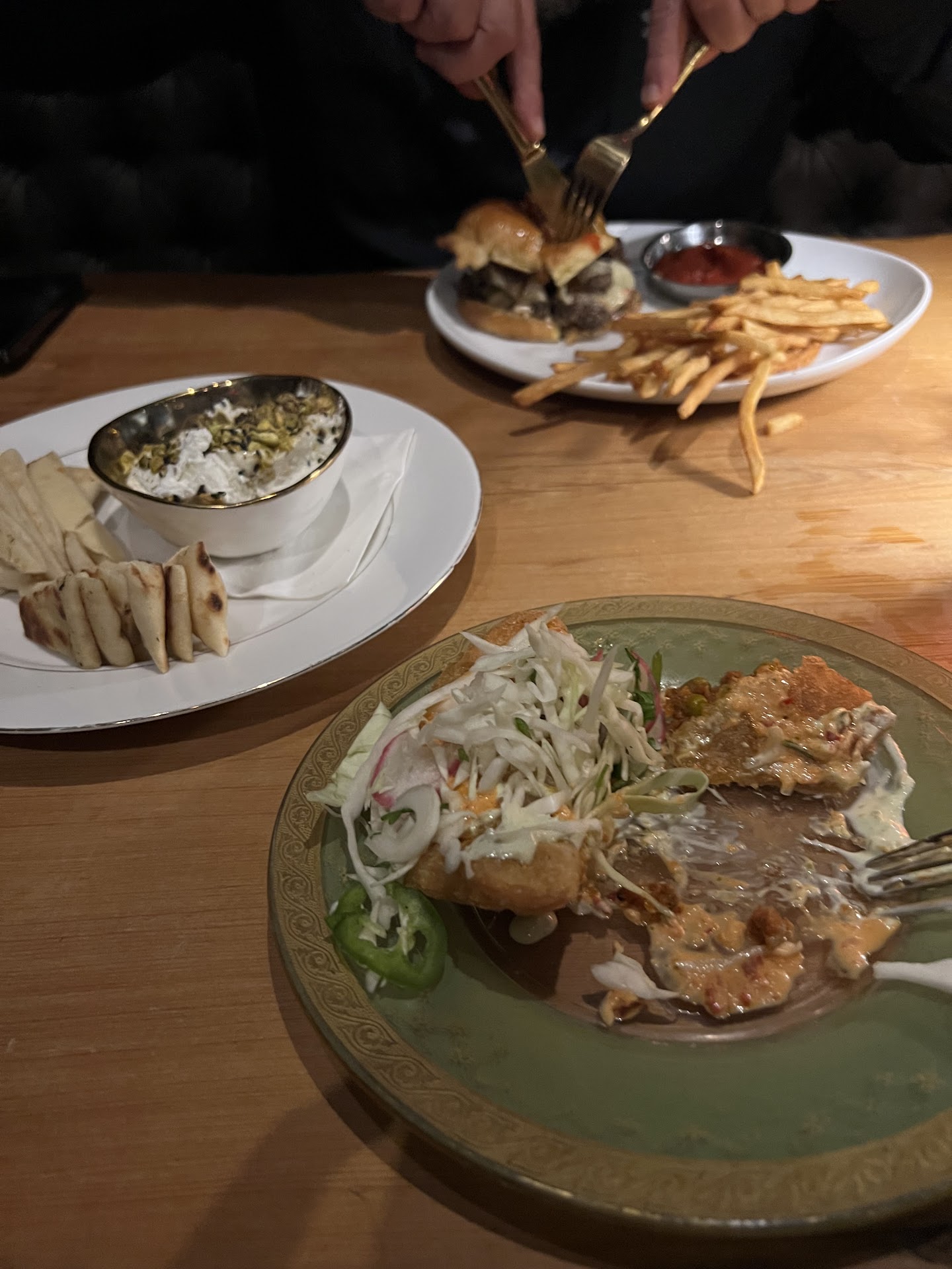 Read moreGreat, thoughtfully put together, local spot with an ecclectic menu. The loaner reading glasses at the front door are your first sign that they are working hard to think of every detail in this establishment. Interesting menu with unexpected flavor combinations that stun the pallette (in a good way!). My husband said it was the best burger he’s ever had, and my empanadas were definitely the best I’ve ever had. PERFECT pastry on that empanada! Dessert was amazing with a chocolate mousse cake with complex textures and flavors and a bread pudding that stands out with its biscuit base and house made vanilla ice cream to top it off. Fries were amazing shoe string fries with perfect crunch.