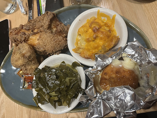 My friends ordered a chicken sandwich doused in āHotlantaā sauce and the fried chicken plate with sides of mac & cheese, collards, & a biscuit. The person who got the fried chicken plate said the chicken was really juicy - even moreso than the sandwich. And obviously I had to get some chicken dish so I actually got the chicken sandwich also with the āHotlantaā sauce on the side. I didnāt want to get messy, but ended up anyway lol. So next time I would just opt with it already tossed in it. The sauce was really good though - tangy, honey, hot. The chicken itself was bigger than the bun but was still easy to eat. No condiment (like mayo) on it so I had to rely on the sauce. Crunchy coating on the end parts and moderately moist. Came with 2 pickle slices and potato wedges. I would rate it a 7/10.