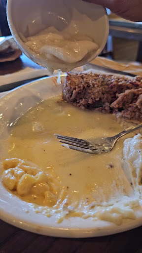Read moreI didn't take any pictures this time, so I'll be wordy. My husband and I went for breakfast, as we usually do. The sourdough French toast is my favorite. I also love the cheesy grits, hash browns. We always get the bacon, as we don't prefer the basic ham or sausage. (You can't go wrong with bacon) Their apple juice is a good choice. Their chocolate milk is fat-free, tru moo. We love all of the sides. Try the apples. It's like eating the inside of an apple pie. They have build-your-own-meal options, or you can choose from predetermined selections. Lunch is served sometime after 10 or 11, I believe breakfast is all day. I don't think we have ever been for dinner. All of their meals are homemade/ old-fashioned style. This is the kind of place where you would get country fried steak or a meatloaf. The restaurant is located inside an Old Time Country store, where you can shop while waiting for your party to be seated. They will text you when your table is ready, as well as announce it over the intercom. If the store is too crowded, you can sit outside on the long porch in one of the rocking chairs. The restaurant is always full, and sometimes, there is a long wait. Still, though, they are quick to clear tables and get you in ASAP. Just plan on a 30-minute wait, and you will be happy when/if it is shorter. We went on a Monday morning and waited maybe 5 minutes. Usually we go on the weekends and wait 30 minutes. But you never know. The restaurant itself is full of country signage and memorabilia from back in the day. With chunky wooden tables and floors and a giant fireplace, it is like you just walked into the old west. Even the store sells old-fashioned candies that are hard to find in other places. Usually the staff is very friendly and personable like you would expect in a small town. I gave a four-star on this one only because I feel like the service from our wait staff was just average. Usually, even when busy, they are more... just more. This time felt like 'they did their job'. They did nothing wrong, but I could have gotten that service from anywhere. Still, I highly recommend this place. My husband and I have noticed that the quality of food/service at most restaurants has gone downhill in recent years. We went to check this one out to see if it still holds up, and it does. This one still makes our list of places to continue going. Good job...