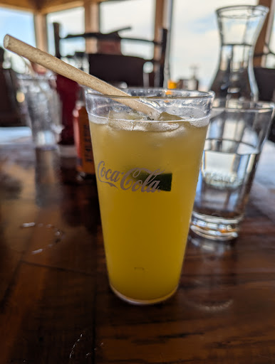 One pleasant surprise was the absolutely great service we received. Our server was helpful, friendly, and let me order a custom Mocktail type drink. I overheard another server tell a customer she noticed a problem with the way his order was cooked and that he hadn't eaten it without him even saying anything. I even saw our server get accosted by an elderly guest when she was coming out of the bathroom (which are outside and downstairs from the restaurant BTW) and he grabbed her arm and started asking her for something and she handled him with grace. I'm not sure I would have been so patient after a busy day of...