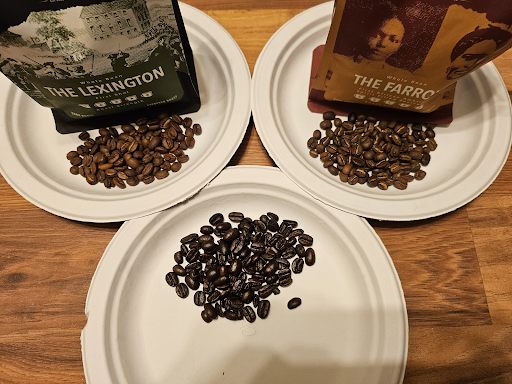 For comparison, the beans at the bottom of the photo are from a national roaster and have a roast level of about an 8 to 9. I'd rate The Lexington about level 5 and The Farrow about level 6.