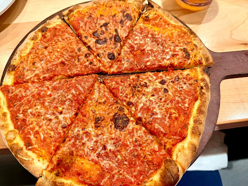 As is my tradition, I ordered pizza to test the kitchen’s skill. Being someone who makes New Haven–style “apizza” at home, I hold restaurants to a high standard. Earlier, I had explained to Gaetano that I wanted a simple pie—just sauce, a touch of Pecorino Romano, and a well-charred crust with a solid undercarriage. He assured me it could be done and encouraged me to tell Savannah exactly how I wanted it. She listened carefully, and the result did not disappoint.