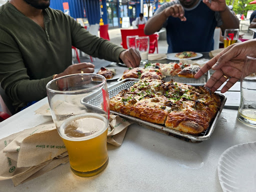 Read moreWe spent some time at Boxyard on a Saturday and decided to have Fullsteam’s pizza as an early dinner. Spent around $30 on a whole pizza, which is incredibly expensive — especially for what we got. The pizza is made with sourdough starter, which results in a fluffy base and slightly crisp crust. We got the Forager (sweet onion, green onion, mushrooms, roasted garlic base), and the toppings were few and far between. I questioned whether there were actually any mushrooms on the pizza. Either the cheese or pizza itself was also quite greasy. All in all, underwhelming and definitely not close to being worth $30. For around $40, we can get two pies from a pizzeria in downtown Durham and have enough leftover pizza for another meal. If you want to spend money at Boxyard, I’d suggest skipping food and buying the outrageously expensive drinks, instead.