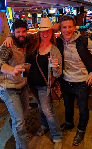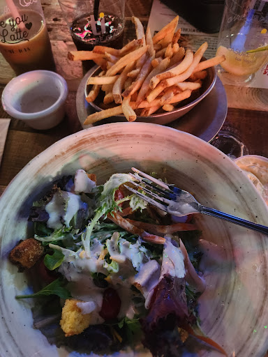 Read moreOur server was Gin, as she said, "like Gin and tonic" was such an outstanding waiter and badass mechanical bull rider. She was so bubbly and upheld a great representation of this saloon. We came at around 7pm before the peak of business. Gin was always checking in on our drinks and asking us if we needed to order anything else. An hour in, we decided to order dinner. The menu is bbq led. I had a salad and fries, my dad had chicken tenders and fries, and my mom had mashed potatoes. I found the salad to be a fresh spring mix, and they make the croutons from cornbread, which was a different twist on a basic crouton. My dad's chicken strips and bbq sauce reminded me of Tony Roma's, which is a win in our books. The fries were just average, in our opinion. Normally, I can finish a serving of fries, but I actually stopped after eating half my portion because they just weren't as appetizing as I hoped. I didn't get the urge to go back for more. They have by far the best mashed potatoes like mashed potatoes that would go excellently with a turkey dinner. They are basic but done well, with from what I could tell butter, sour cream, and salt. so when you have an option or want to grab a side dish, get the mashed potatoes. My mom had a liquor watermelon drink, and my cousin a very good (it was so smooth) orange and lime...