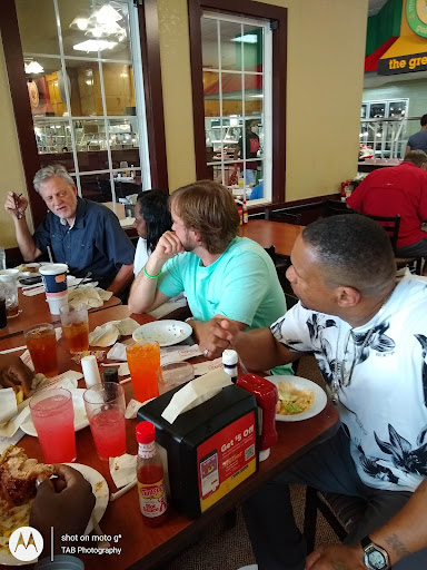 Unfortunately the Cherrydale location doesn't come close to the Easley location although should be quite similar. We went about 2:30 so it was slow enough that the different areas should have been cleaned up and any of the food that didn't look up to par weeded out. Specifically talking about the salad bar, the lettuce had more brown spots than not, wilted leaves and was dripping water. Not a good start. I bypassed the cucumbers because of soft spots. There was more olive juice than black olives (and honestly, olive juice truly isn't visually appealing). They'd be better putting in a shorter container, fill it with the olive slices and add juice to keep them moist. There were many shriveled grapes tomatoes.. I could go on but I'll just say I ended up draining the water from the lettuce I picked through and put some of the crab salad on top. The hot bar looked much fresher. My hubby had a burger, said it was okay. He's also a sweet eater and liked the chocolate cream pie. I went for the banana pudding. Our server was fantastic and extremely personable. I will say the chili was actually good. Not likely to return to...