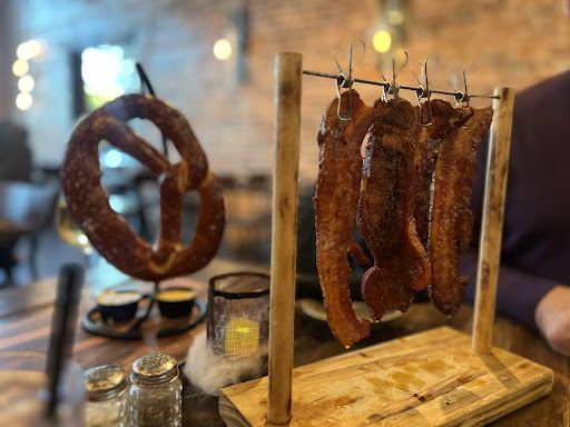 Read moreThis place is just too much gimmick and no substance. The food should be the focus and it is clearly not. Everything about it is trying too hard from the seared logo in the burger buns to the dry ice in the cocktails. The music was kitchy and way too loud. Several tables near us seemed to have to shout at each other to be heard. The lights dimmed at some point too but then kept flickering because they apparently have a bad dimmer switch. I wouldn't mind all that if any of it actually was well prepared or cooked. My husband and I both ordered our hamburgers medium well. His came out undercooked and mine was extremely burnt everywhere but the very thickest part in the middle. The cocktail I had didn't taste like anything and cost $15 (not noted on the menu) for a tiny flute like glass. I didn't know alcohol could be bland. The menu is very confusing and we thought our sides were going to cost us $6+ each the way its written. Thankfully they were included in the meal and it was a good thing because I only got about 5-6 Brussels sprouts for the serving. They also ruin the Brussels with a very strong unnecessary balsamic vinegar which is not described in the menu that it has that. The "candied bacon" was just regular bacon. I will say the only decent thing was the mac and cheese my husband got. The service was also good with everyone being...