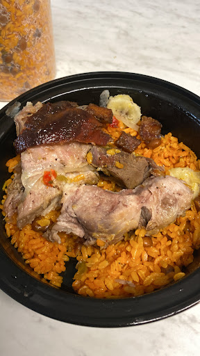 I purchased two individual meals containing: lechon and arroz con guandules, smoked half chicken with guenitos, tembleque, and limber. The lechon has an incredible taste! I was utterly disappointed with the chicken; it was not thoroughly cooked. It was raw in the middle. I was super delighted with the lechon! I will be back again for that and longaniza. El moro de gandules taste very similar to my dad's. I'm 100%...