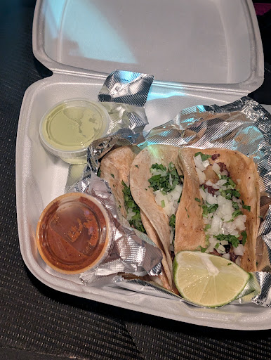 I ordered takeout near closing time and asked for kitchen-friendly recommendations. I got four tacos, a side of pinto beans, and totopos with salsa. The red salsas, including their hottest, were surprisingly mild, though the green avocado/tomatillo sauce was pleasant. Portions felt average, likely due to the late hour.