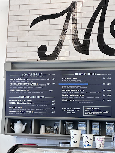 I love the Filipino-inspired coffee flavors! The barista ringing us up (I wish I got his name!) was very nice, helpful, and patient. I kept asking for the Bibingka Creme BrĂ»lĂ©e Latte and the Creme BrĂ»lĂ©e Latte ICED and he reminded me both times that they’re only served hot. There’s clear text at the top of the menu that these drinks are only served hot (due to the way they torch the sugar) and I didn’t see it haha! So thank you for being patient with me :D He offered that he could make me an iced latte with Bibingka cream but instead, I opted for the Iced Campfire Latte ($6.35) and it was delicious! My husband got the Creme BrĂ»lĂ©e Latte ($6.35) and my sister-in-law ordered the Iced Chagaccino ($6.75). They are all so good and tasty. The place itself is very bright, trendy, and clean. They have a few tables inside for 2-3 people and there are a good amount of benches and tables outside. 5 stars for this location, service, and coffee. I’d love to try out other flavors next time!