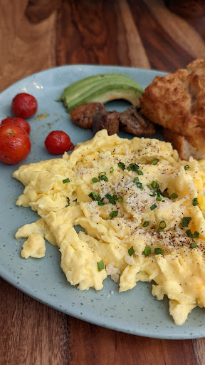 Read moreI arrived mid day to grab coffee, a bite to eat and get some work done. The place is beautiful and they were playing nice music. The staff smiled and were welcoming. I attempted to order something to eat, but they did not have anything that was on the menu that I could eat ( I am a vegetarian They were out of most items even though they appeared to have a good sized kitchen. Maybe it’s more of a breakfast place and I should’ve gone earlier?I was starving & needed to eat something so I ordered some cake, a chai latte and a sparkling water. No staff took my order, He showed me where I can self serve on an iPad and pick a number to return to my table with. I did so and placed my order leaving a 20% tip, but when my Order was ready pointed, and showed me where to pick it up. The latte was so full that A LOT of it spilled onto the saucer when carrying it back to my table. Up on tasting it and not only was it not hot, but it was so sweet. I could barely drink it. My cake was a bit stale, and I only had a few bites. What seemed to be the manager was very friendly and walking around saying hi to patrons coming in and interacting with the staff. I did enjoy the atmosphere and stayed for a while drinking my sparkling water and getting my work done. I found it odd that Nobody observed or cared that I didn’t eat my cake or drink my latte, even though I was there for over an hour. To top it off I had to park in the garage underneath and my parking was very expensive as well. I’m not sure if they validate but if they do, it was not obvious/posted annyw and nobody said anything to me about it either. I probably will not return to...