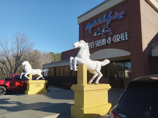 This week we chose the Pacific Buffet. I had never been to the area of Town Center but my friend had. With two large white stallions greeting us at the entreance my curiosity peeked we enter to find a bride over a pond with water falls on each side. The amount of coins left by other patrons suggested a lot of wishes had been made there!