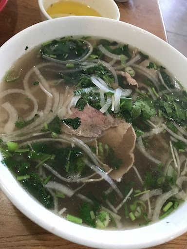 The two of us came to visit this place out of convenience. The restaurant is located down the street from where we stayed during our recent trip. The staff was somewhat pushy for an order. It was our first time and we did not have a chance to familiarize with the menu. We ordered the hot tea and jasmine tea was served. The tea has a pandan flavor which may be pleasant to some but may be not to others. I had ordered the PhÆĄÌ TaÌi NaÌŁm and was disappointed. The broth was more on the sweet side and did not have much of the beef broth content you would expect. The overwhelming use of mushroom powder and/or rock sugar made the broth tasted almost like a sweet soup. The TaÌi meat was a poor quality cut of beef chuck. It was over cooked by the broth and did not retain any beef flavor. The NaÌŁm meat on the other hand was a little bit undercooked. It was so tough that it was not enjoyable to eat. They did give a generous portion of meat. There were three sizes, small, medium, and large. The prices were $10.50, $11.50, & $12.50 respectively. At these prices, I would expect the flavor to be decent but was a bit disappointed. My wife had ordered the BuÌn BoÌ HuĂȘÌ. The bowl was full of the blood cake cut in small chunks. It was quite a lot and can be intimidating for someone who don't want to consume blood cake. The vegetable plate was mixed with banana blossom and bean sprout for both of us. The banana blossom was specific for the BuÌn BoÌ HuĂȘÌ but there was no other vegetable besides it. My wife ended using the coriander leave, the Thai basil, and the bean sprout with the banana blossom. I've seen other places serving shredded purple or white cabbage as condiments to the BuÌn BoÌ HuĂȘÌ. Likewise, BuÌn BoÌ HuĂȘÌ would be well complimented with the shrimp paste which was missing. The broth flavor of the BuÌn BoÌ HuĂȘÌ was not the...