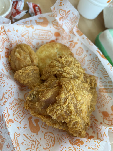 Read moreThe taste and texture of the chicken was great. The Mac and cheese was good. The biscuits and bean/with rice were also very good. The manager talked real slimmy to her crew. Therefore, everyone had attitudes. One young lady cursed like she was a sailor. Other were trying to make it to shift end. The cook was swamped, but he made it do what it do. I tip my hat to him. One young lady pulled a trash can up to the register area and left it. Did not wash her hands and went back to handling food. Another swept the floor and did the same.Does the water work in there? No hair nets, no caps or any type of hair cover. That fake stuff was everywhere. In the dining room, trash cans had been emptied. The trash was left sitting in the walkway in front of the exit door. Our order of 12 pieces of chicken,6 biscuits and two sides took 42 minutes. Unacceptable!!!!!!!!!!!!!!!! I will never go back inside of that Popeyes,nor any other. Service left a bad taste in my mouth. Regards Kevin...